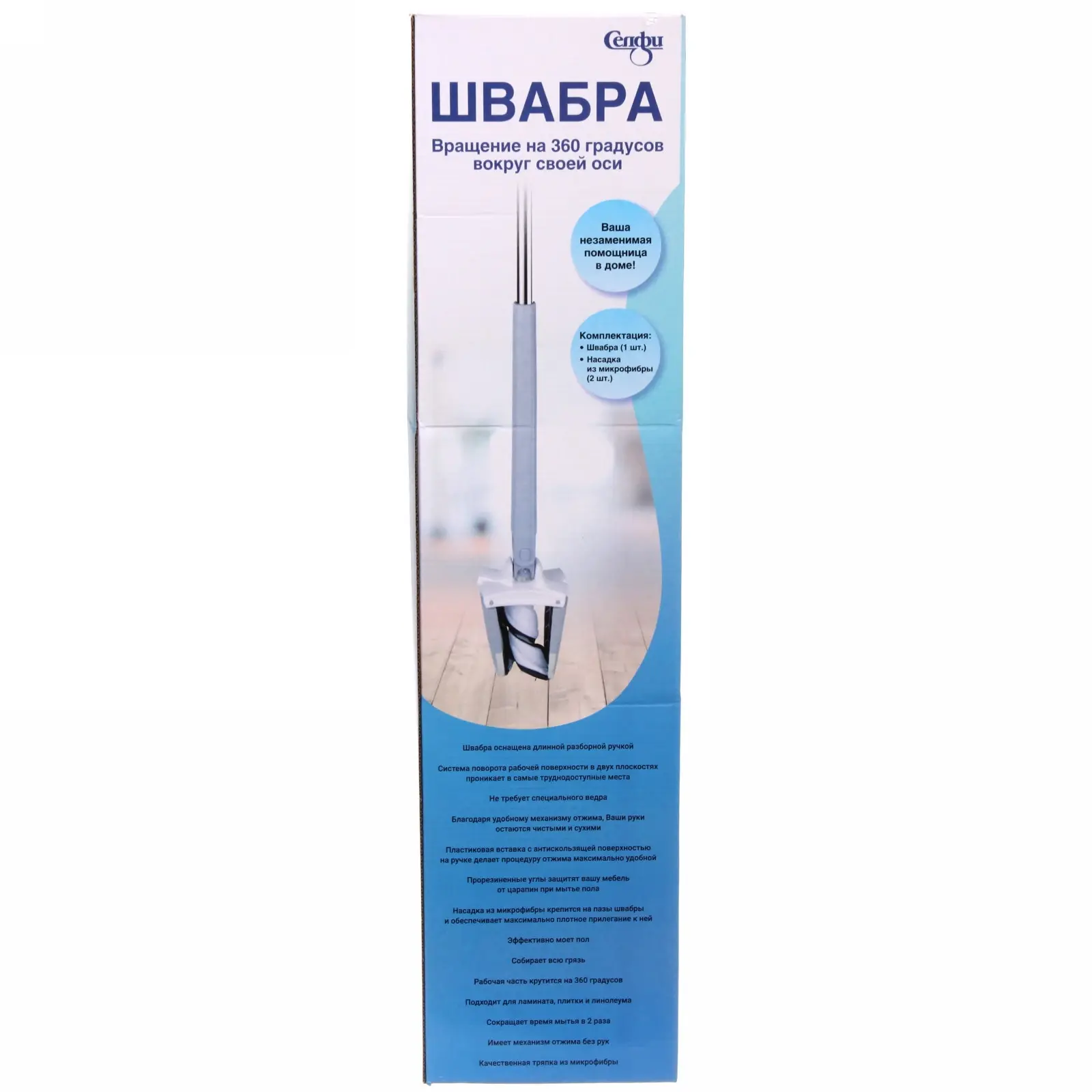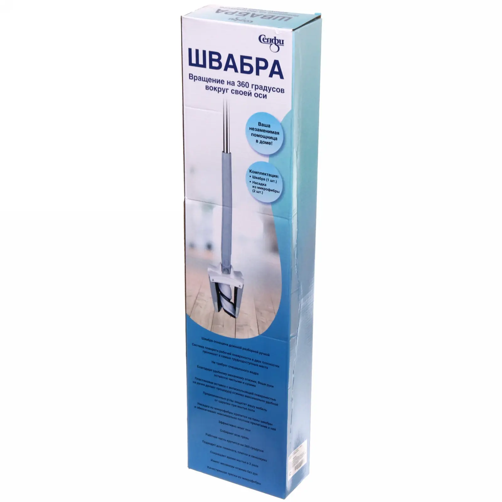 Забудьте о мокрых руках и разводах! Швабра Селфи с двумя насадками из микрофибры обеспечивает эффективную уборку всех типов поверхностей: от нежного паркета до практичного линолеума. Механизм отжима позволяет контролировать уровень влажности тряпки одним движением.