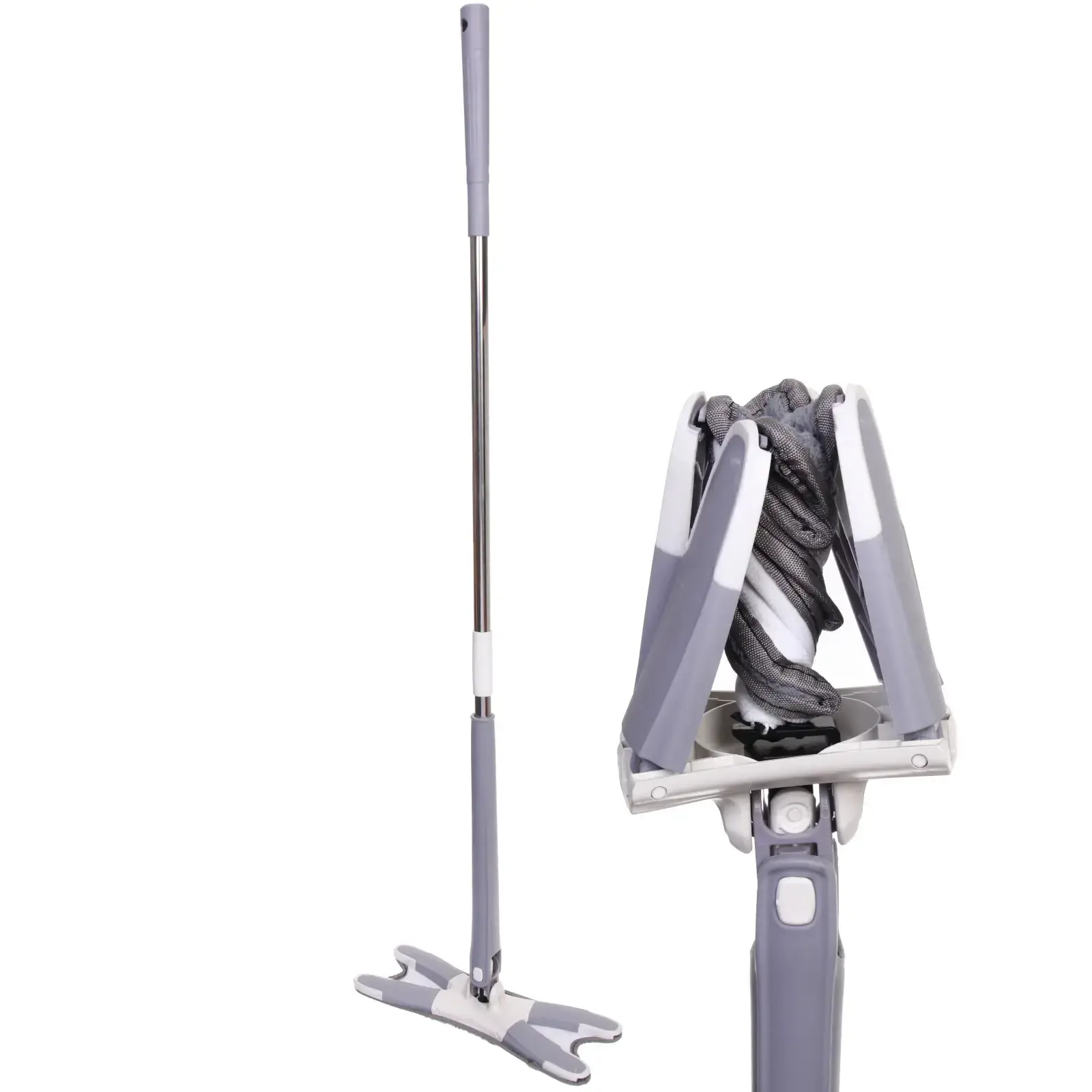 Швабра Селфи с отжимом, 2 насадки из микрофибры, пластик/металл, серый/белый