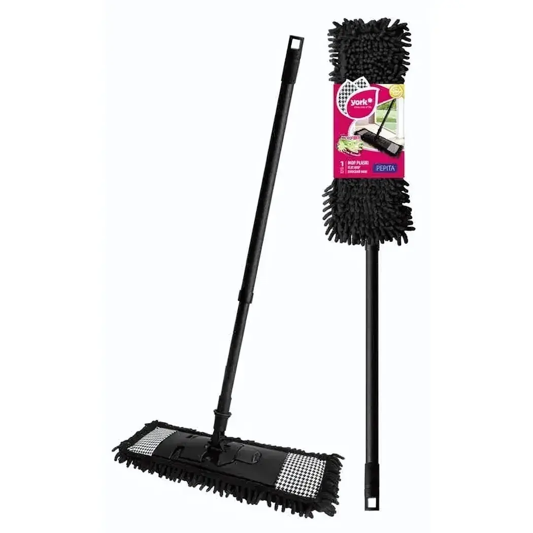 Швабра «ПЕПИТА» с плоской насадкой из микрофибры, черный цвет, ручка с фиксатором