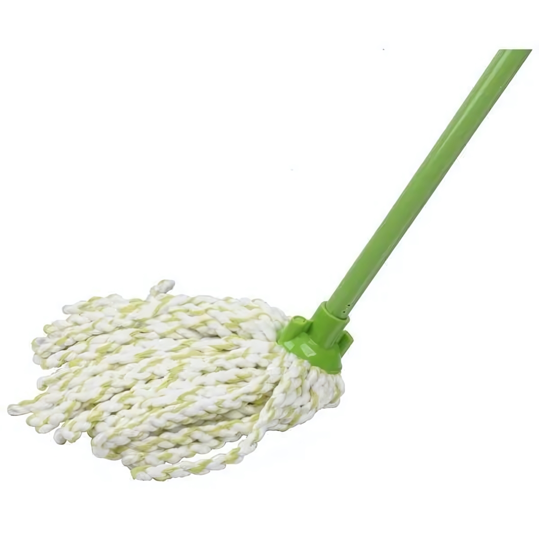 Швабра с насадкой из микрофибры MopM9, зеленая ручка, насадка из скрученных волокон, для влажной уборки
