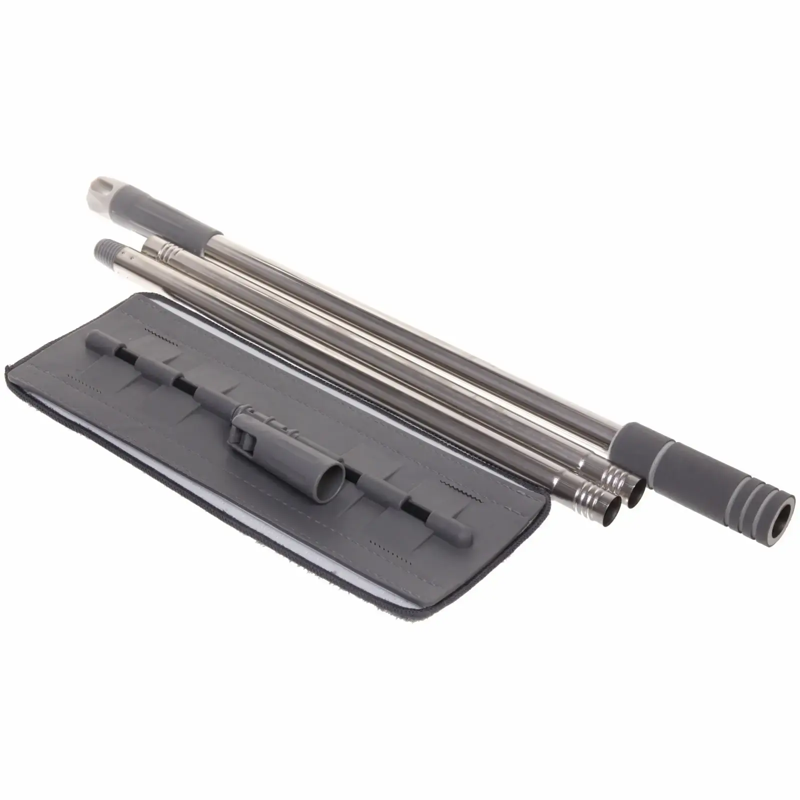 Комплектация: 1 телескопическая ручка, 1 силиконовая основа, 2 микрофибровые насадки (30х12 см). Гарантия отсутствия царапин на поверхностях благодаря мягкому обрамлению рабочей зоны.