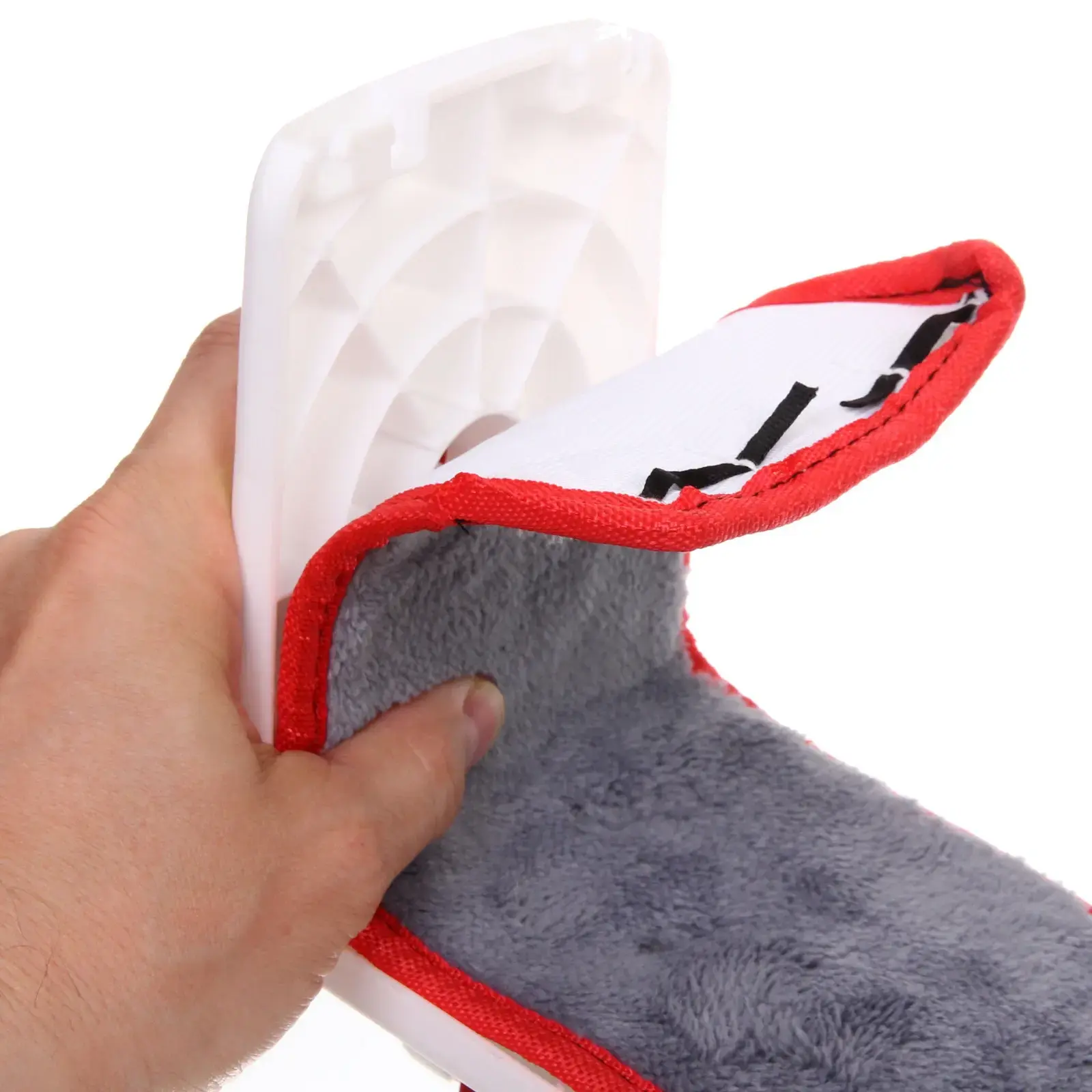- В комплекте — сразу две сменные микрофибровые насадки, которые легко снимать и стирать