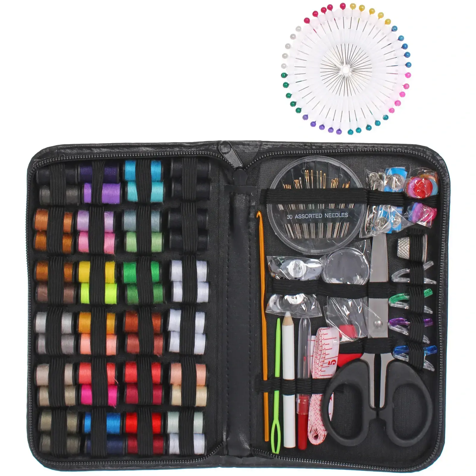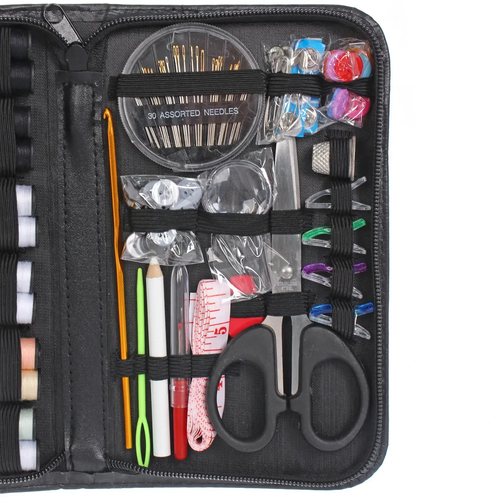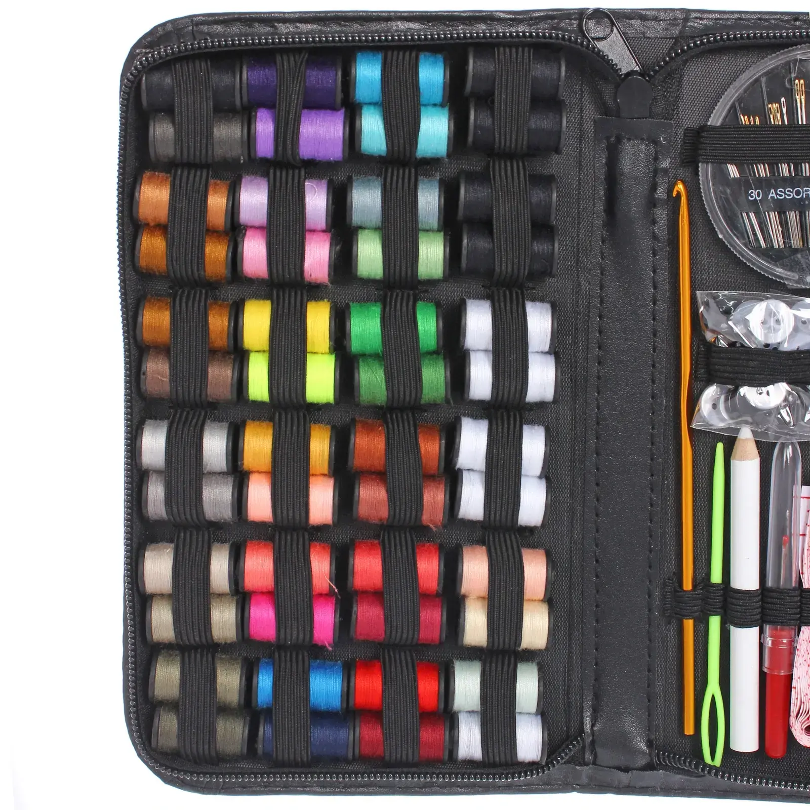 Этот набор включает 66 предметов, которые помогут вам в шитье, вышивке и других рукодельных проектах. Внутри вы найдете разнообразные катушки ниток, иглы, ножницы, булавки и другие необходимые инструменты. Все принадлежности удобно организованы в черном текстильном футляре с молнией, что позволяет легко находить нужные элементы и поддерживать порядок.
