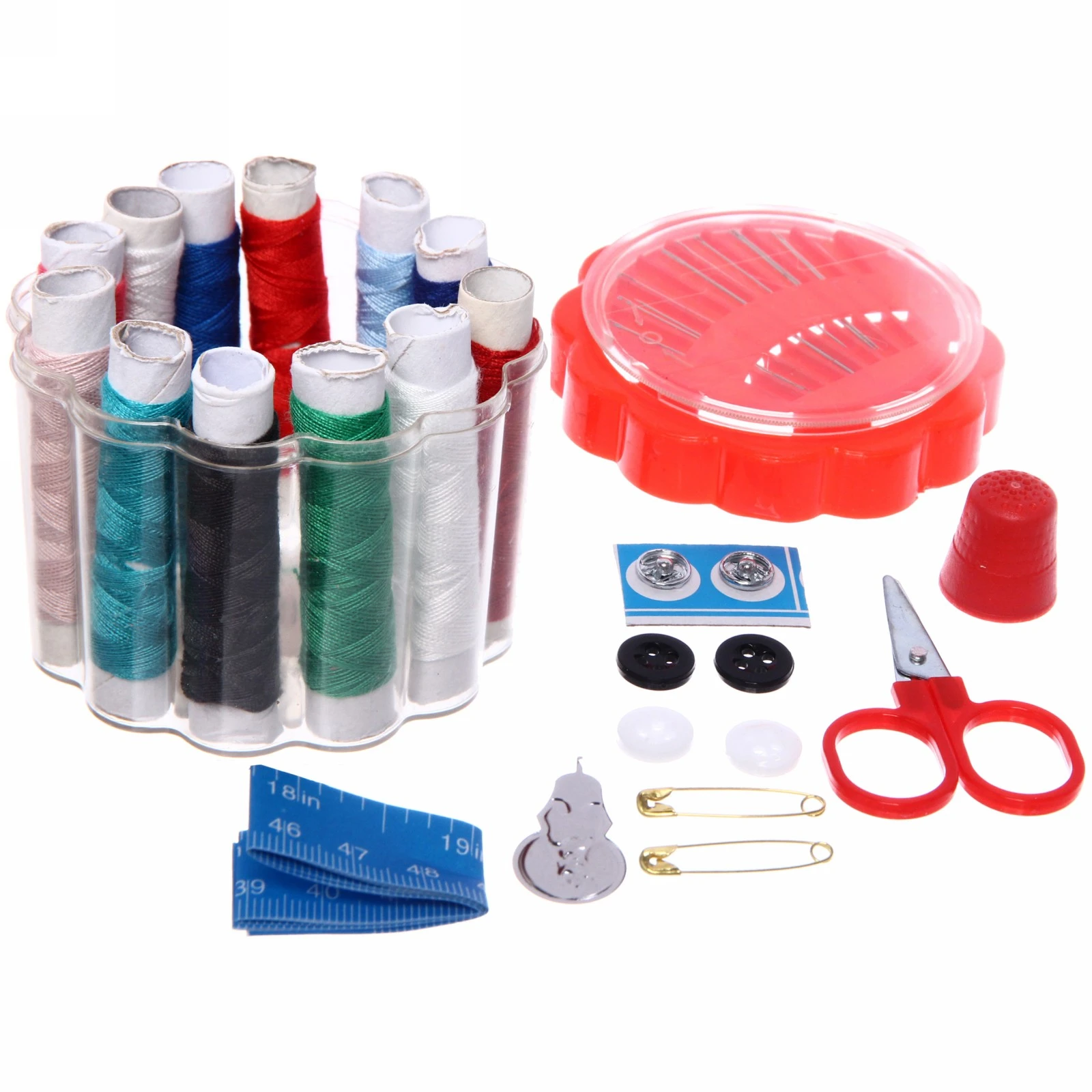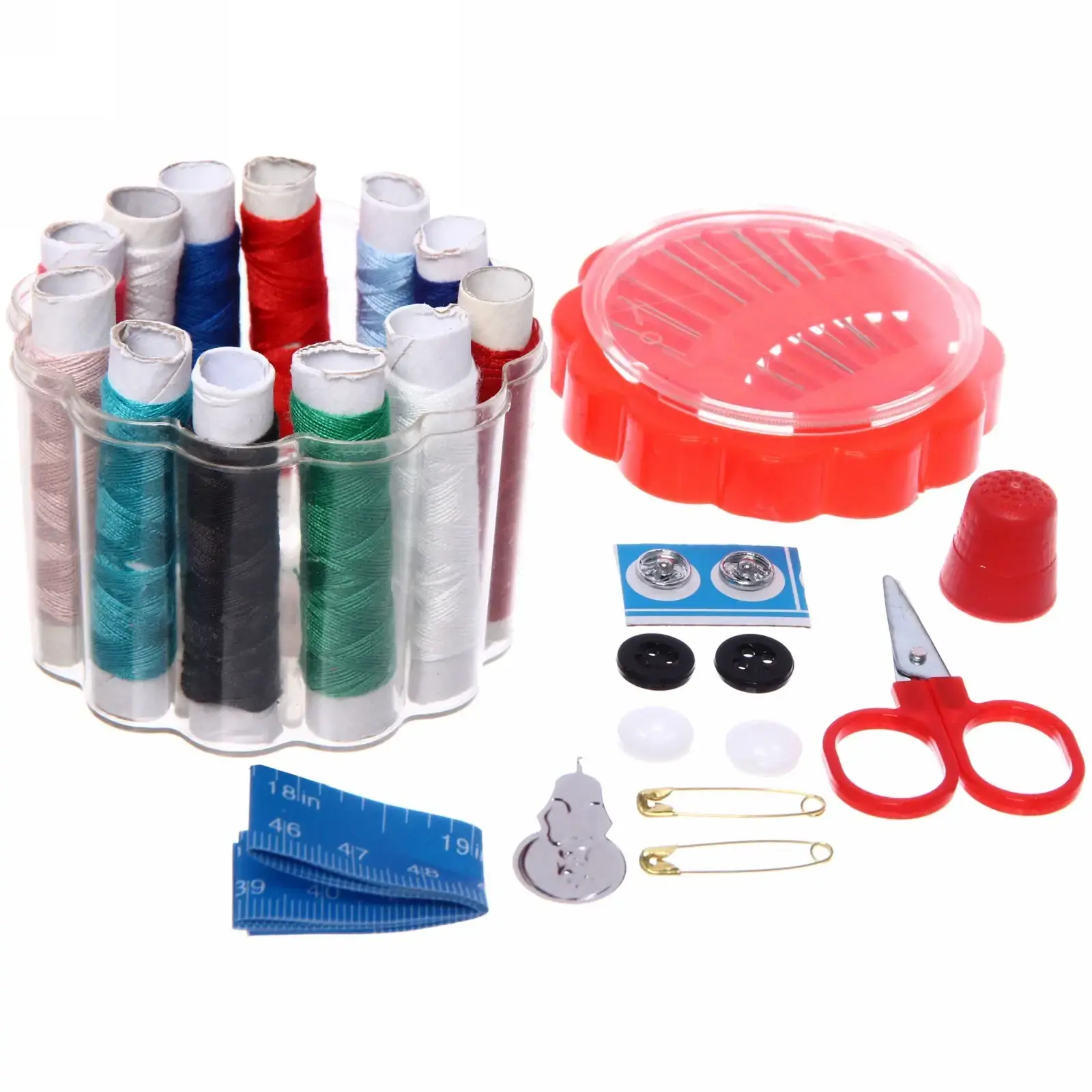 Набор включает в себя катушки с нитками различных цветов, ножницы с удобной ручкой, наперсток, иглы и сантиметровую ленту с делениями в дюймах и сантиметрах. Упаковка может быть квадратной или полукруглой, что добавляет удобства в использовании. Этот швейный набор станет отличным подарком для сотрудников, которые часто уезжают в командировки, и для всех, кто ценит комфорт и практичность в рукоделии.