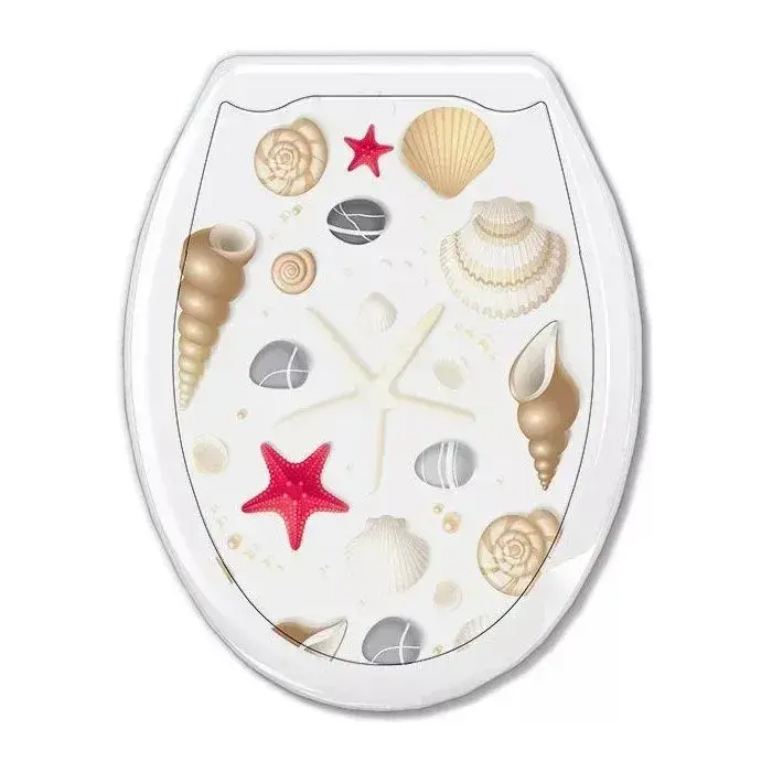 Сиденье для унитаза жесткое с рисунком ракушки, белое, пластик, стандартный размер