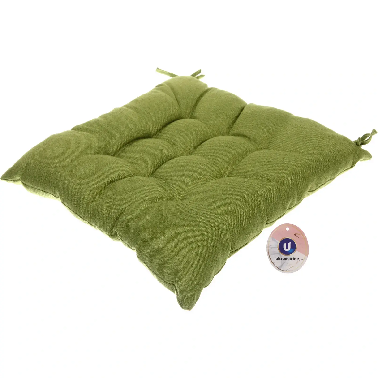 Размер сидушки составляет 40х40 см, что делает её универсальной для большинства стульев. Цвет — светло-зеленый с легким блеском, который добавляет свежести и яркости в ваш интерьер. Сидушка имеет горизонтальные и вертикальные канавки, создающие визуальный эффект клеток, что делает её не только удобной, но и стильной.