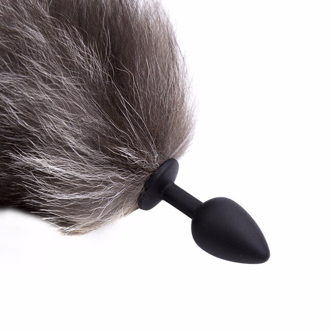 Анальная пробка с хвостиком «Серебристая лиса», силикон, искусственный мех, 6,5 см, черный с серым