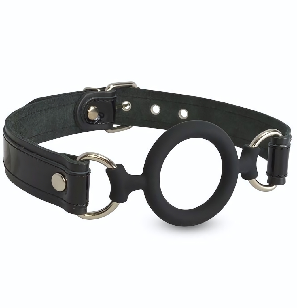 Кляп-рамка Sitabella, силикон на кожаных ремешках, регулируемая застежка, диаметр 5,1/3,6 см, длина 59 см, черный