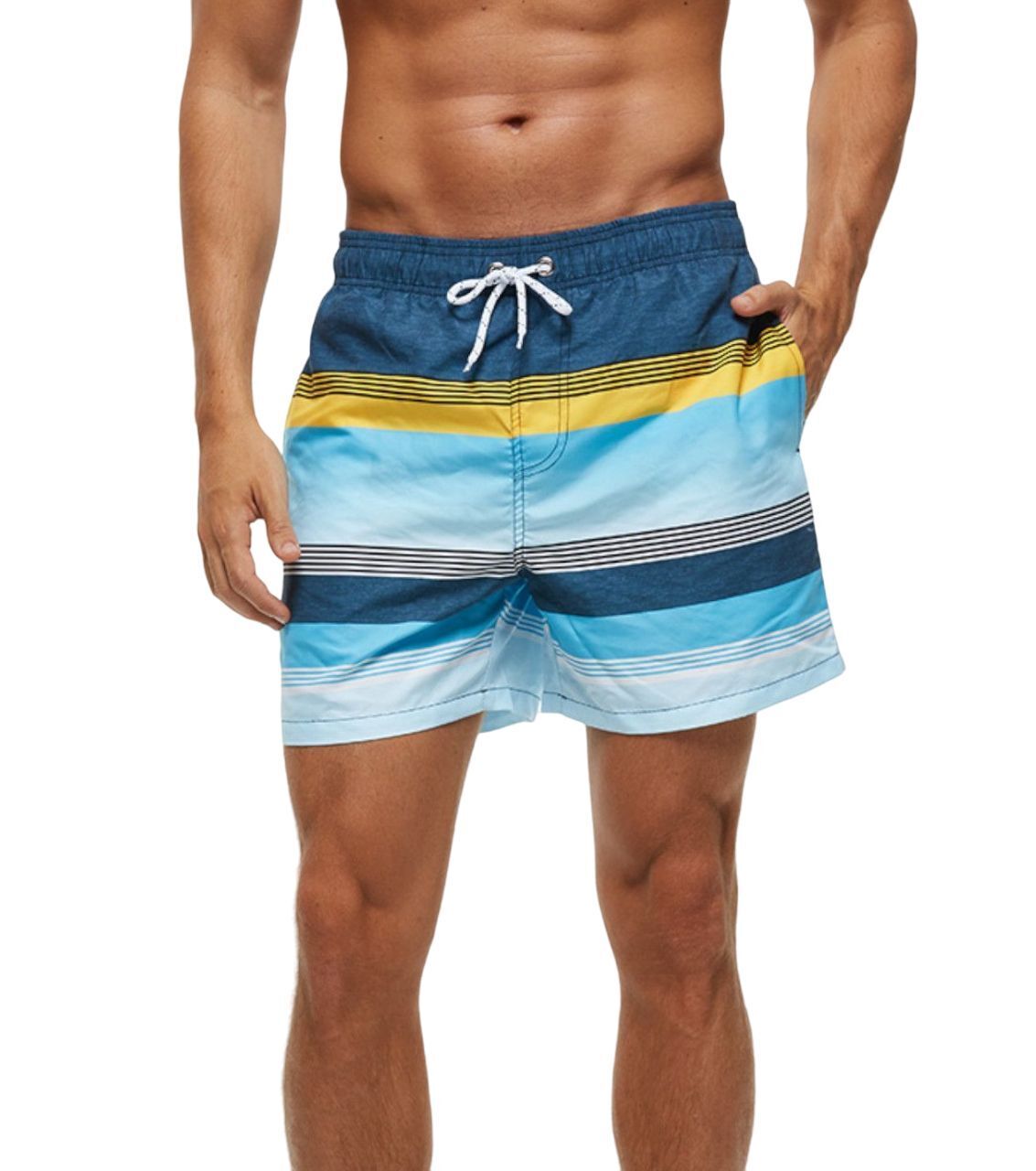 В отличие от обычных шорт для улицы, эти модели специально разработаны для пляжа и воды благодаря быстросохнущему материалу из 100% полиэстера. Ткань не впитывает воду, что позволяет высыхать в считанные минуты после выхода из воды, сохраняя комфорт и предотвращая переохлаждение. Разноцветные горизонтальные полосы добавляют стильный вид, делая шорты универсальными для повседневного ношения у воды или на прогулках. Прямой крой средней длины до колена обеспечит свободу движений при плавании, беге по песку или активных играх. Такие шорты долговечны, устойчивы к соленой воде и ультрафиолетовым лучам, гарантируя, что они прослужат много сезонов отдыха.