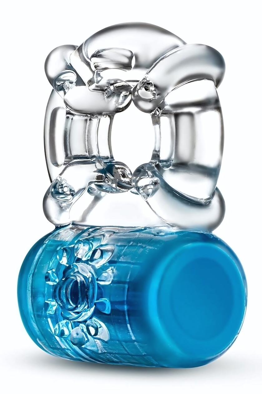 Эрекционное виброкольцо Pleaser Rechargeable, синий, d3.8см, TPE, перезаряжаемое