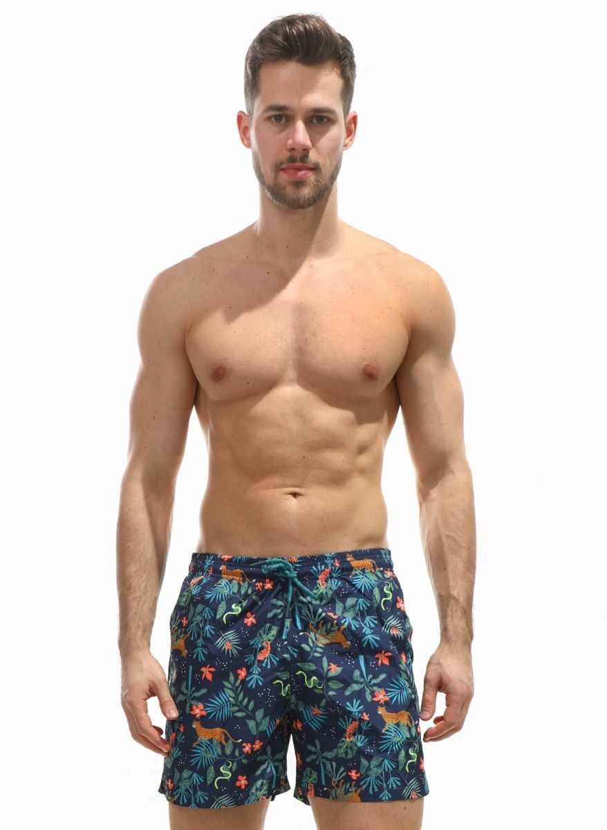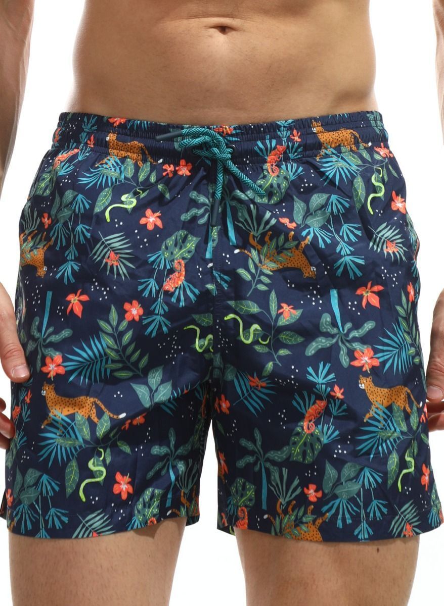 Выбирая эти шорты, вы получаете не только привлекательный дизайн с ярким тропическим принтом, но и долговечность. Материал устойчив к выцветанию и повреждениям, что гарантирует долгий срок службы. Принт включает изображения животных и растений, что добавляет экзотики вашему образу.