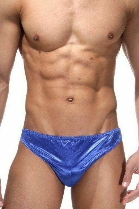 Синие трусы-тонги с сатиновым блеском