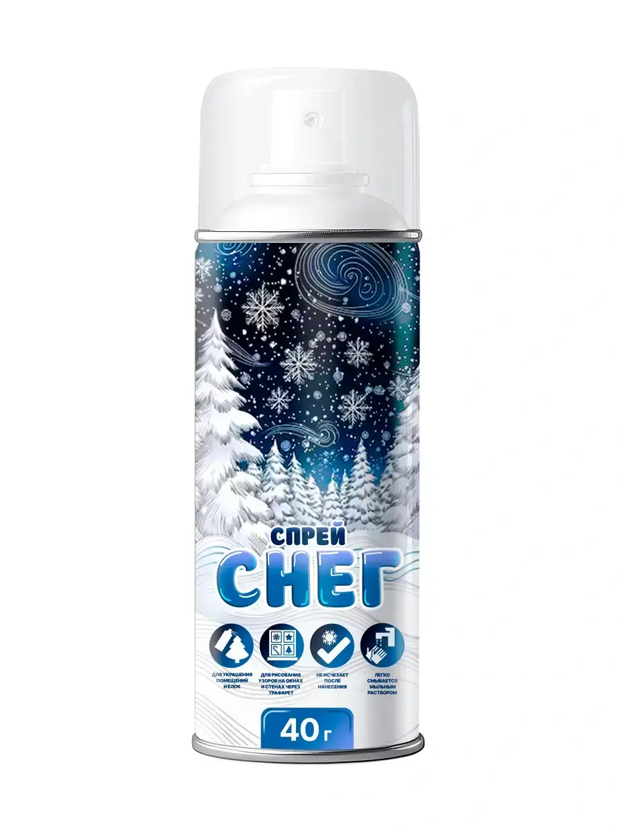 Спрей синтетический снег 40г, нетающий, для декора помещений и ёлок