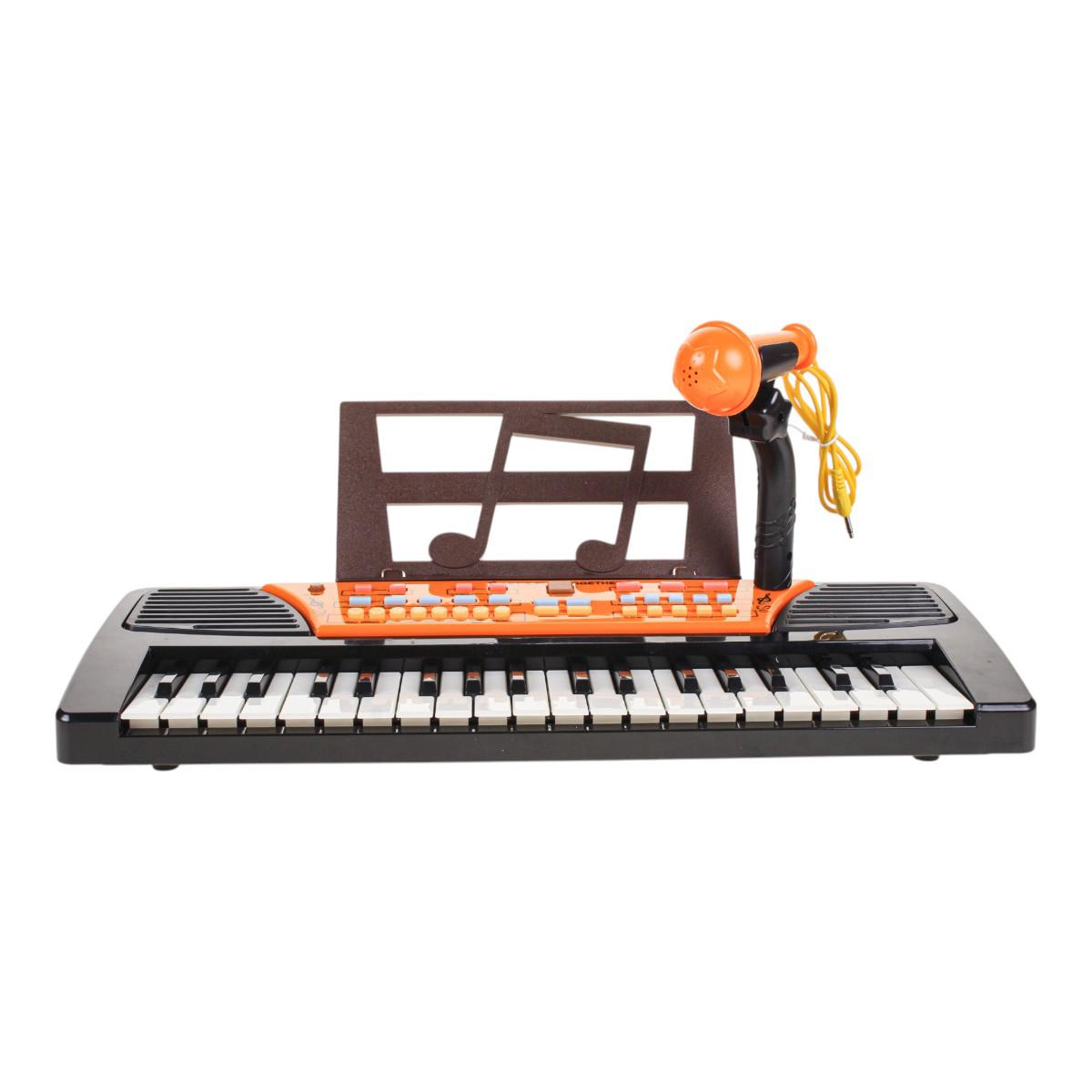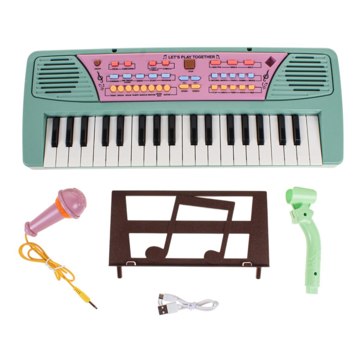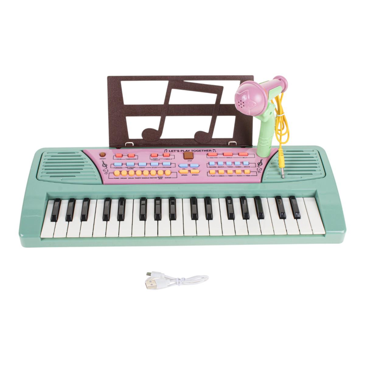 Синтезатор подходит для детей от 3 лет. Он удобен для домашних занятий, музыкальных игр и небольших выступлений. Кнопки управления и режимы позволяют менять тембры инструментов, ритмы и эффекты, а также регулировать скорость и громкость. Дополнительная подставка для нот помогает ребёнку следить за мелодией без лишних отвлечений.