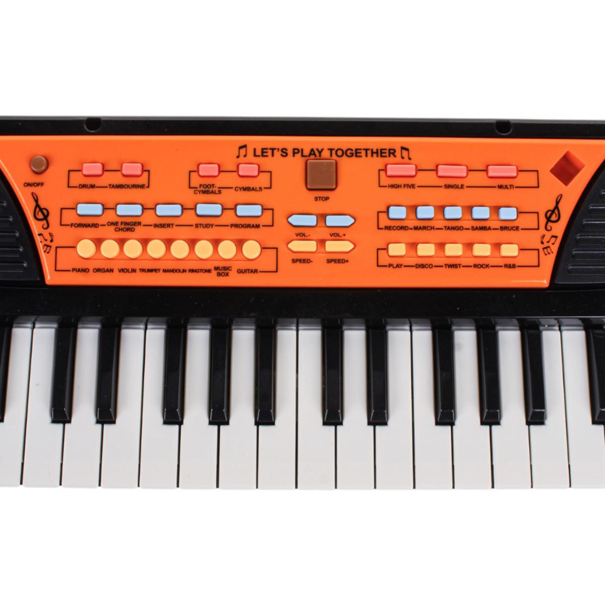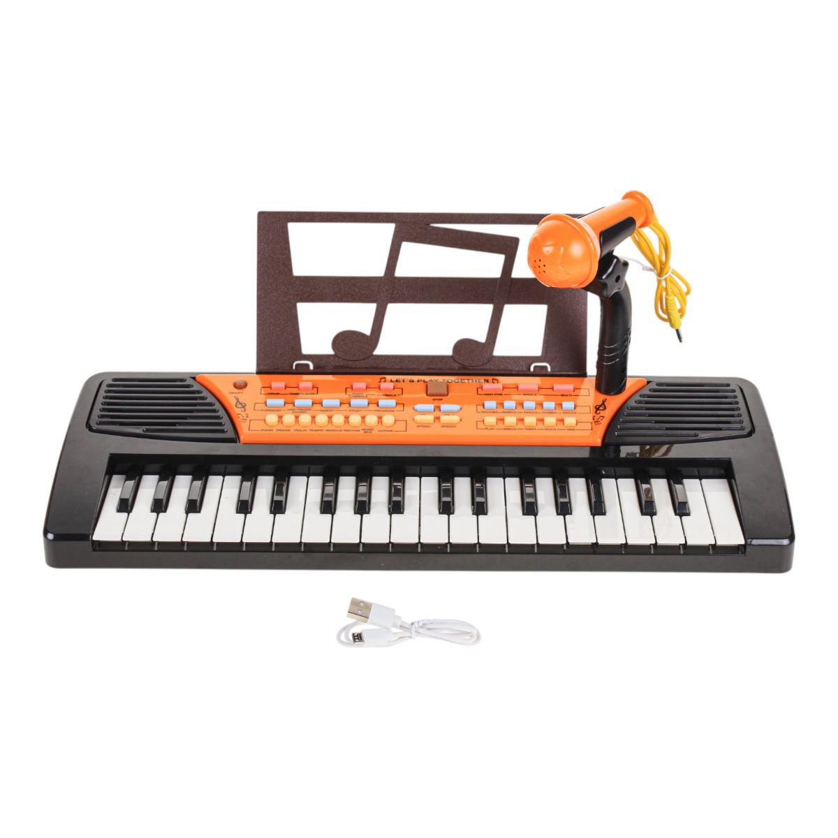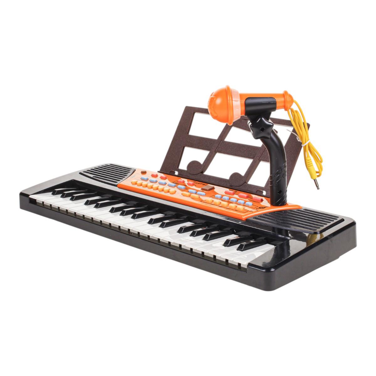 Синтезатор подходит для детей от 3 лет. Он удобен для домашних занятий, музыкальных игр и небольших выступлений. Кнопки управления и режимы позволяют менять тембры инструментов, ритмы и эффекты, а также регулировать скорость и громкость. Дополнительная подставка для нот помогает ребёнку следить за мелодией без лишних отвлечений.