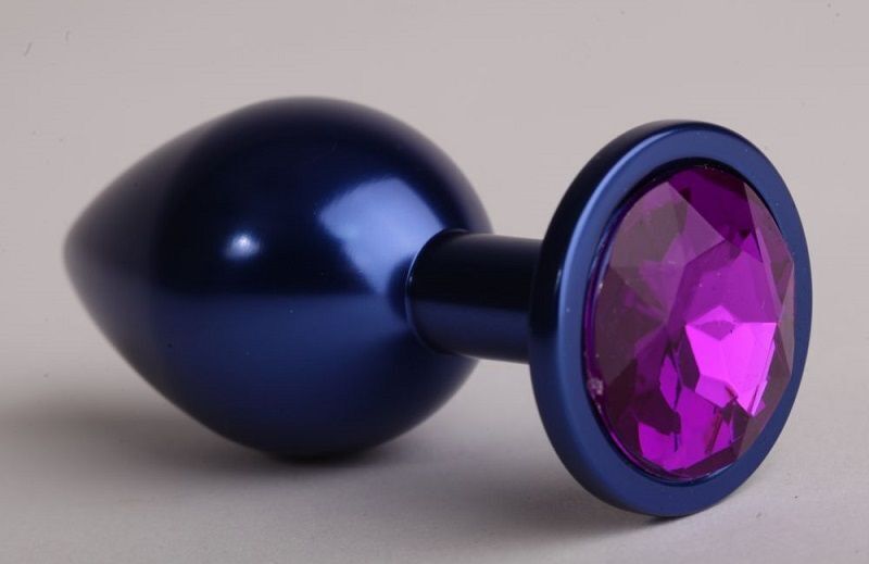 Синяя анальная пробка с фиолетовым стразом