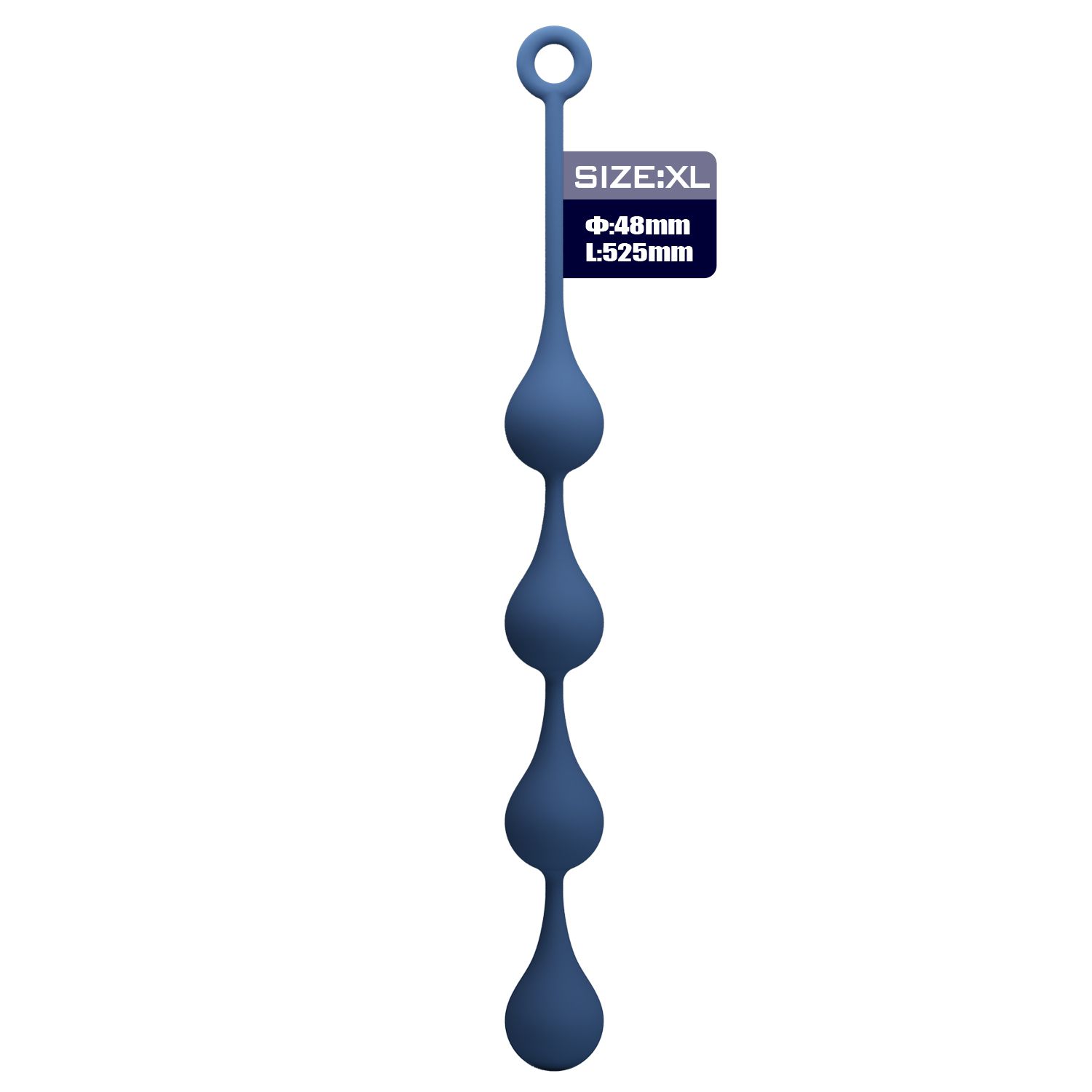 Длина изделия составляет 52,4 см, диаметр самого крупного элемента — 4,8 см. Материал — безопасный силикон синего цвета с гладкой матовой текстурой. После использования игрушку легко очистить теплой водой со средством для интимных аксессуаров. Водонепроницаемость позволяет не ограничивать себя в выборе места и сценария.