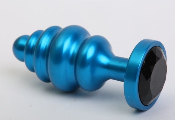 анальная пробка металлическая с кристаллом, 7.3 см, диаметр 2.9 см, цвет синий/черный
