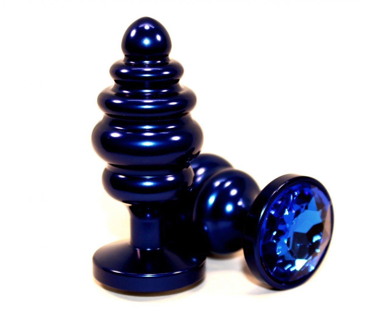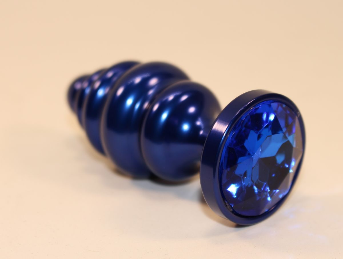Анальная пробка металлическая, синий цвет, длина 7.3см, диаметр 2.9см