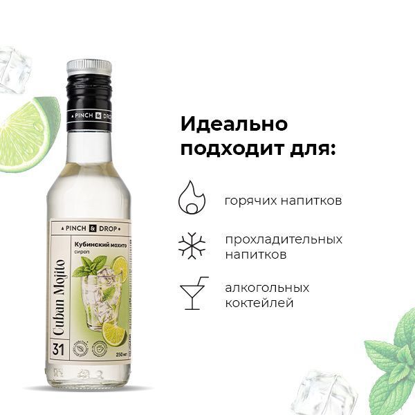 Сироп «Кубинский мохито» отлично подходит для создания освежающих напитков, как алкогольных, так и безалкогольных. Используйте его для приготовления коктейлей, добавляйте в лимонады или используйте в десертах. Он станет отличным дополнением к вашим кулинарным экспериментам и порадует гостей на любом празднике.
