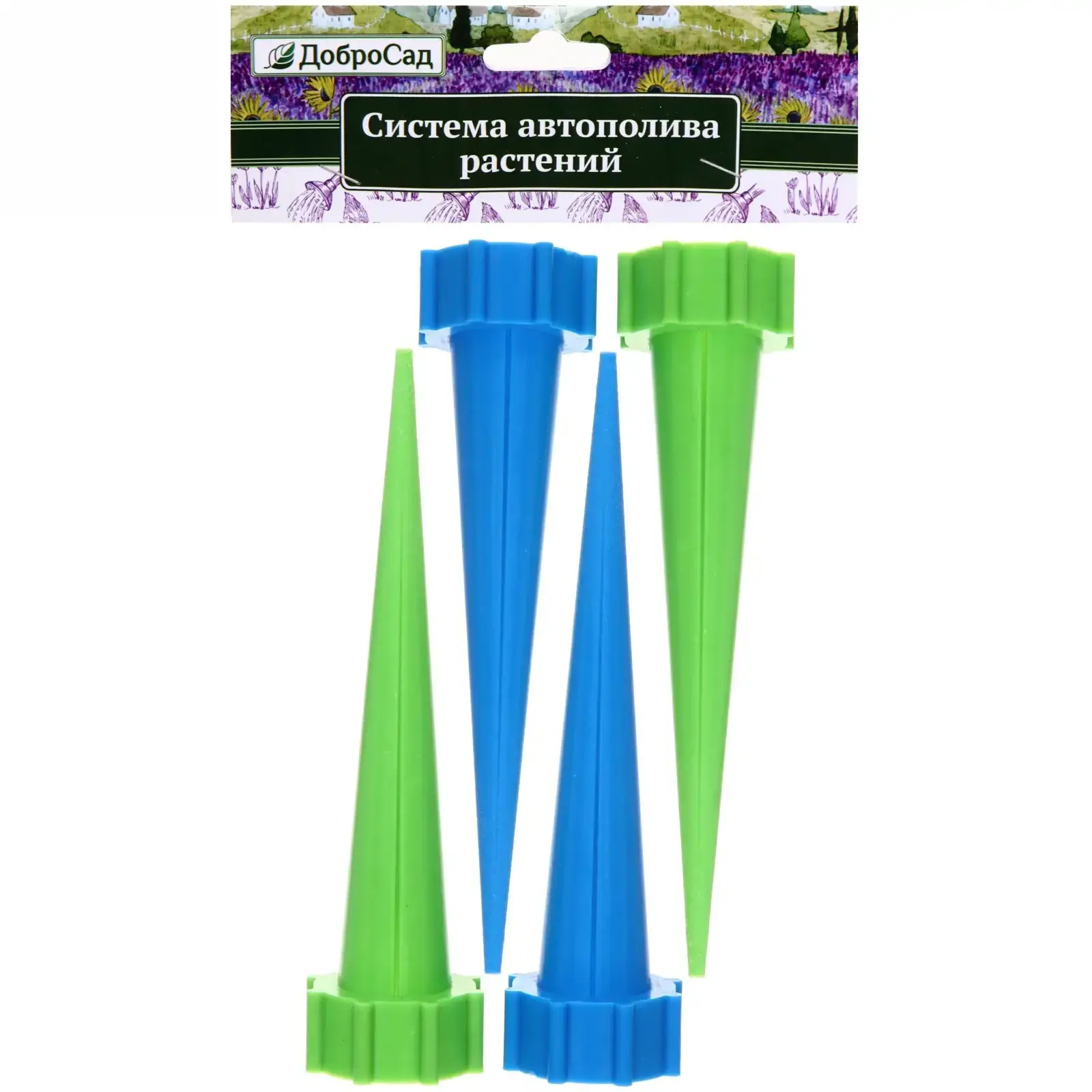 Каждый конус имеет конусовидную форму с широкой основой и заостренным концом, что позволяет легко устанавливать их в грунт. Материал — гладкий и прочный пластик, который не подвержен коррозии и хорошо выдерживает воздействие влаги. Система подходит для использования как в домашних условиях, так и на даче, что делает её универсальным решением для всех любителей растений.