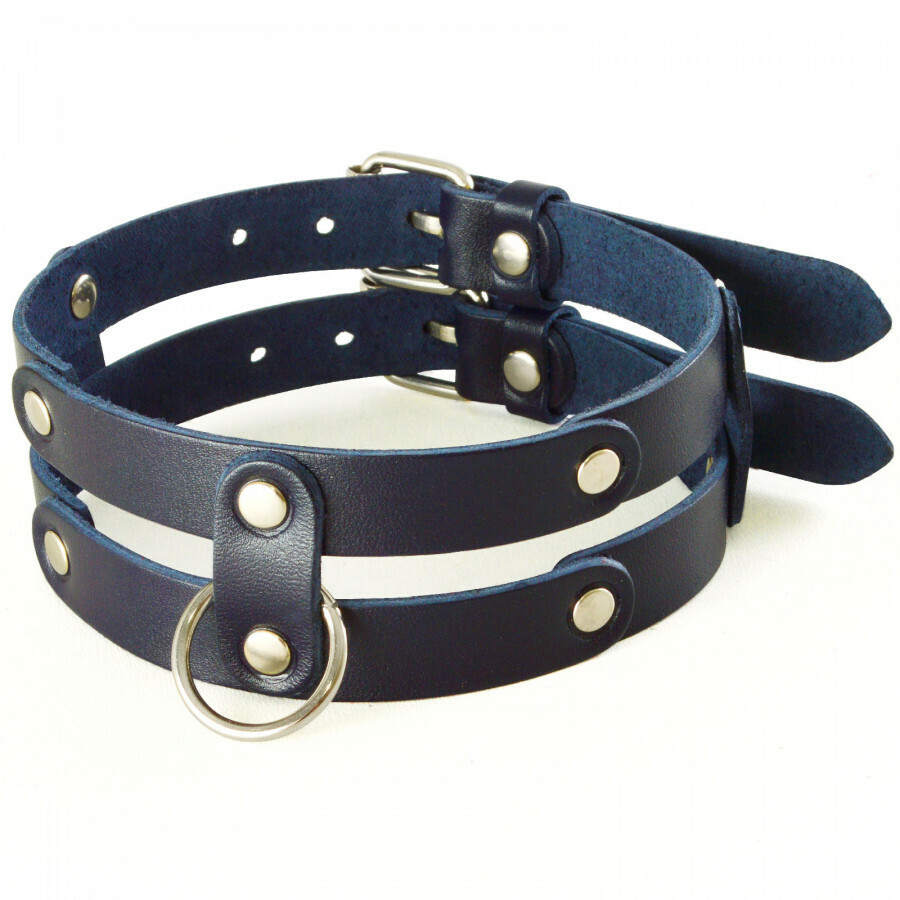 Ошейник с поводком «Грация», кожаный, темно-синий, регулируемый размер, металлическая фурнитура