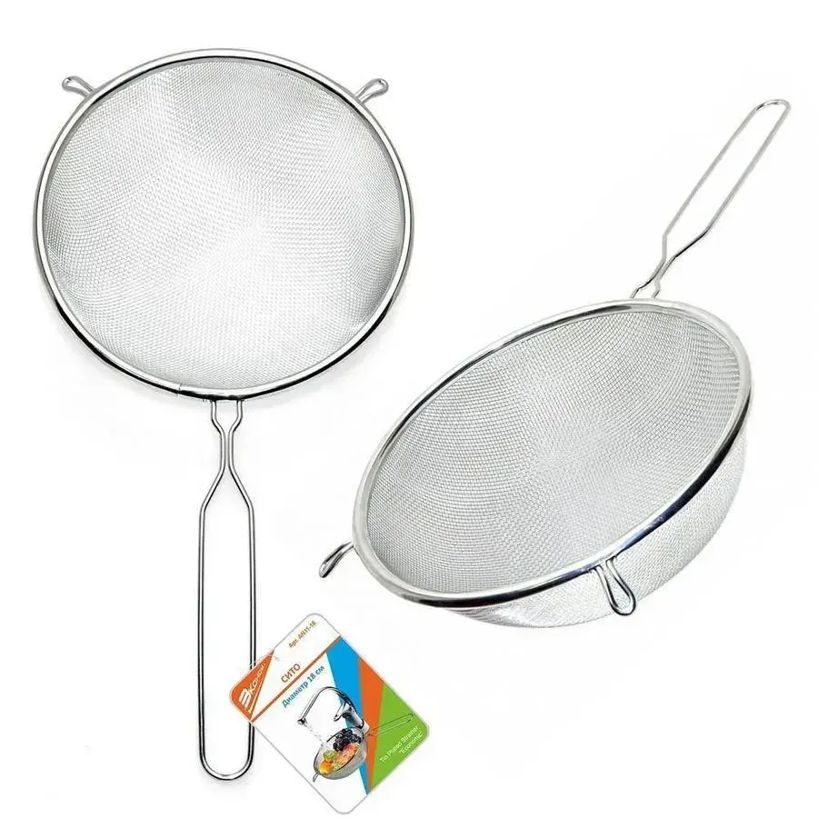 Сито кухонное из нержавеющей стали, 18 см, мелкая сетка, удобная ручка
