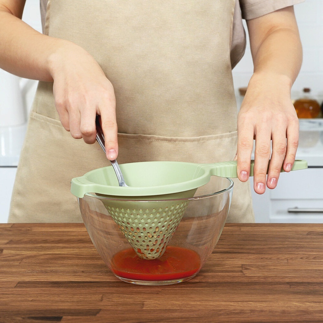 Обеспечивает быстрое и эффективное просеивание, процеживание и посыпание выпечки. М compacto и удобен в использовании, подходит для любой кухни благодаря компактным размерам и универсальным функциям. Благодаря специальным отверстиям жидкость стекает быстро, а грязь и крупные части задерживаются внутри для высшего уровня чистоты продуктов.