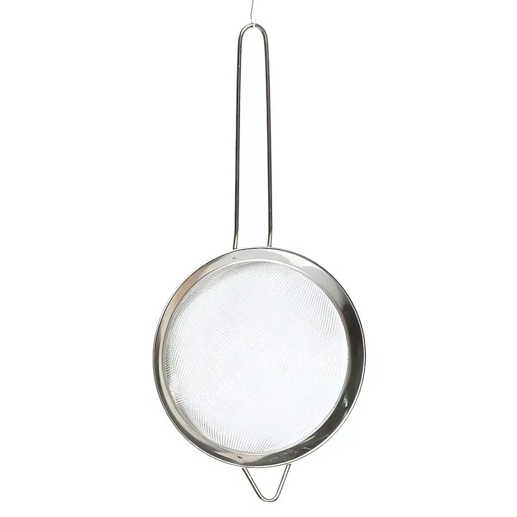 Сито идеально подходит для домашнего использования, а его компактные размеры позволяют легко хранить его в кухонных ящиках или на полках. Длинная ручка обеспечивает надежный захват, а гладкая кромка предотвращает порезы при использовании. Сито также оснащено крючком для подвешивания, что делает его хранение еще более удобным.