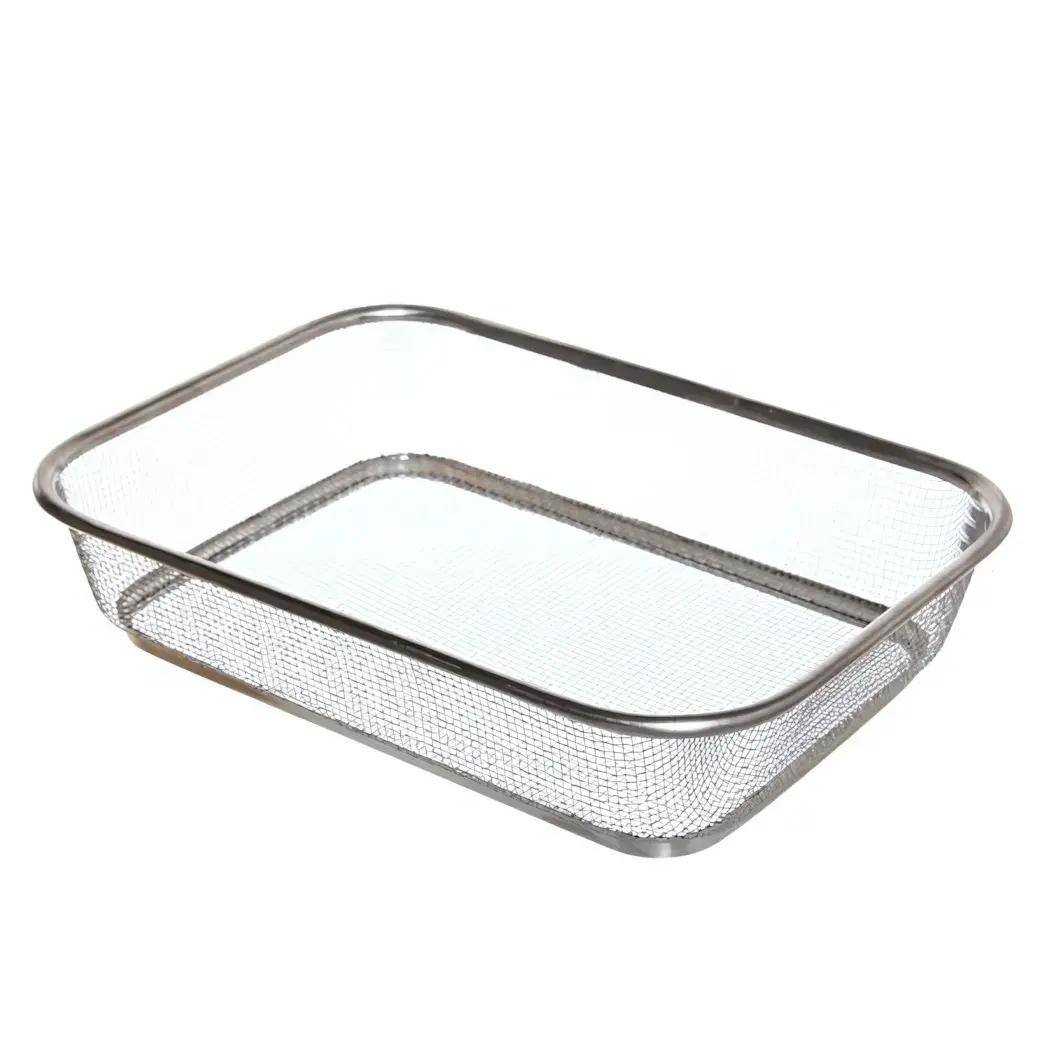 Размеры сита составляют 29,5х21,5х7см, что делает его достаточно вместительным для различных задач. Материал — нержавеющая сталь, что гарантирует долговечность и легкость в уходе. Сито легко моется и не требует особого ухода, что делает его идеальным выбором для активного использования на кухне.
