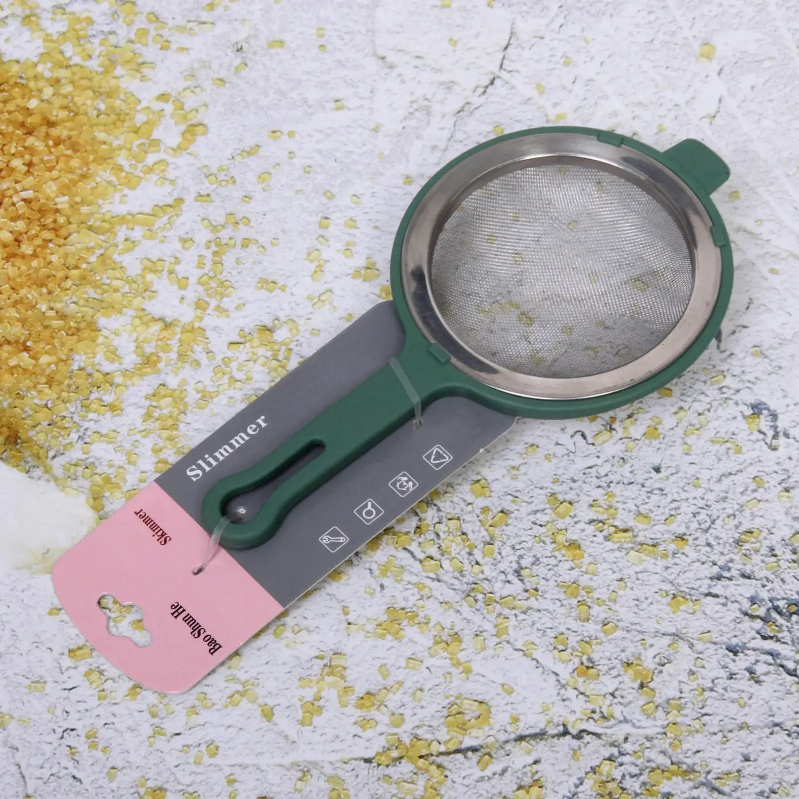 Сито выполнено из качественных материалов: металлическая часть обеспечивает прочность и долговечность, а пластиковая ручка добавляет удобства. Цвет ручки — зеленый, что придаёт изделию яркий и привлекательный вид. Это сито станет отличным дополнением к вашей кухонной утвари и поможет вам в приготовлении любимых блюд.