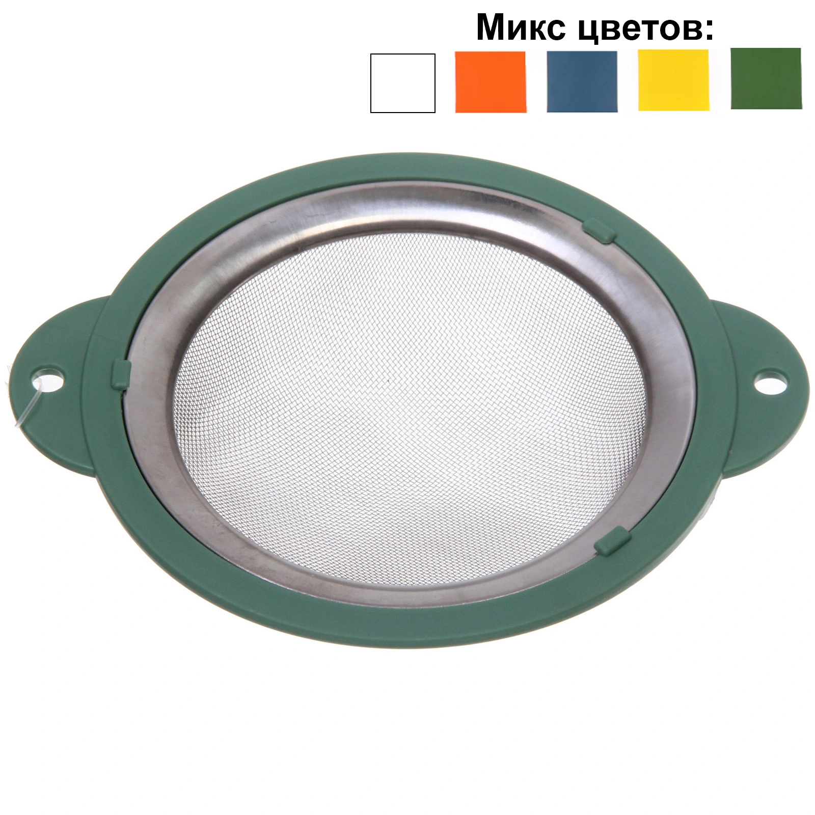 Сито имеет диаметр 14 см, что делает его идеальным для использования в домашних условиях. Оно выполнено из качественных материалов: металлической сетки и пластика, что гарантирует долговечность и надежность. Сито доступно в нескольких цветах, включая зеленый, белый, оранжевый, синий и желтый, что позволяет выбрать вариант, который лучше всего впишется в ваш интерьер.
