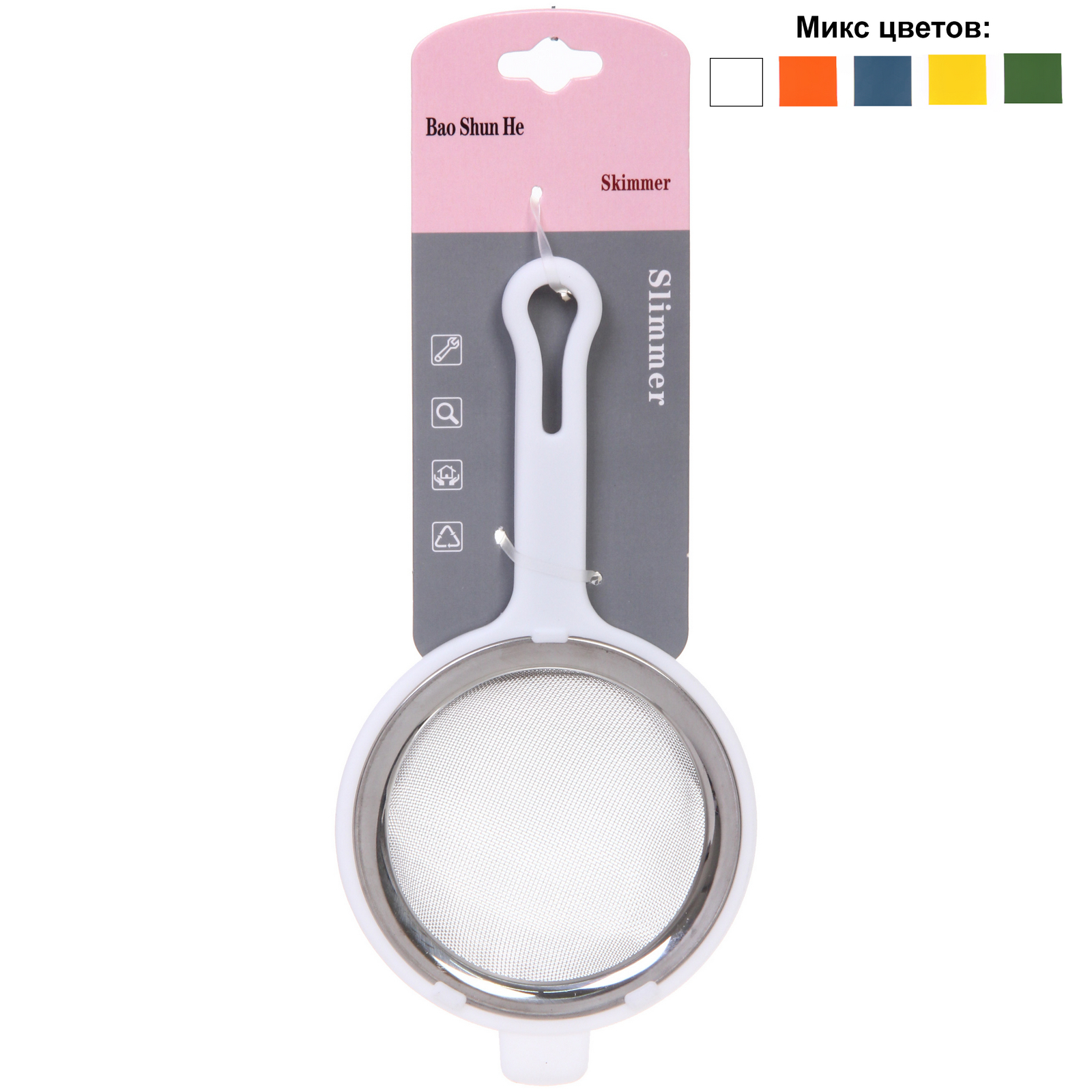 Сито выполнено из нержавеющей стали и пластика, что обеспечивает его долговечность и устойчивость к коррозии. Высокая степень прозрачности сетки позволяет контролировать процесс процеживания, а компактные размеры делают его удобным для хранения. Сито доступно в нескольких цветах, включая белый, оранжевый и зеленый, что позволяет выбрать вариант, который лучше всего подойдет к вашему кухонному интерьеру.