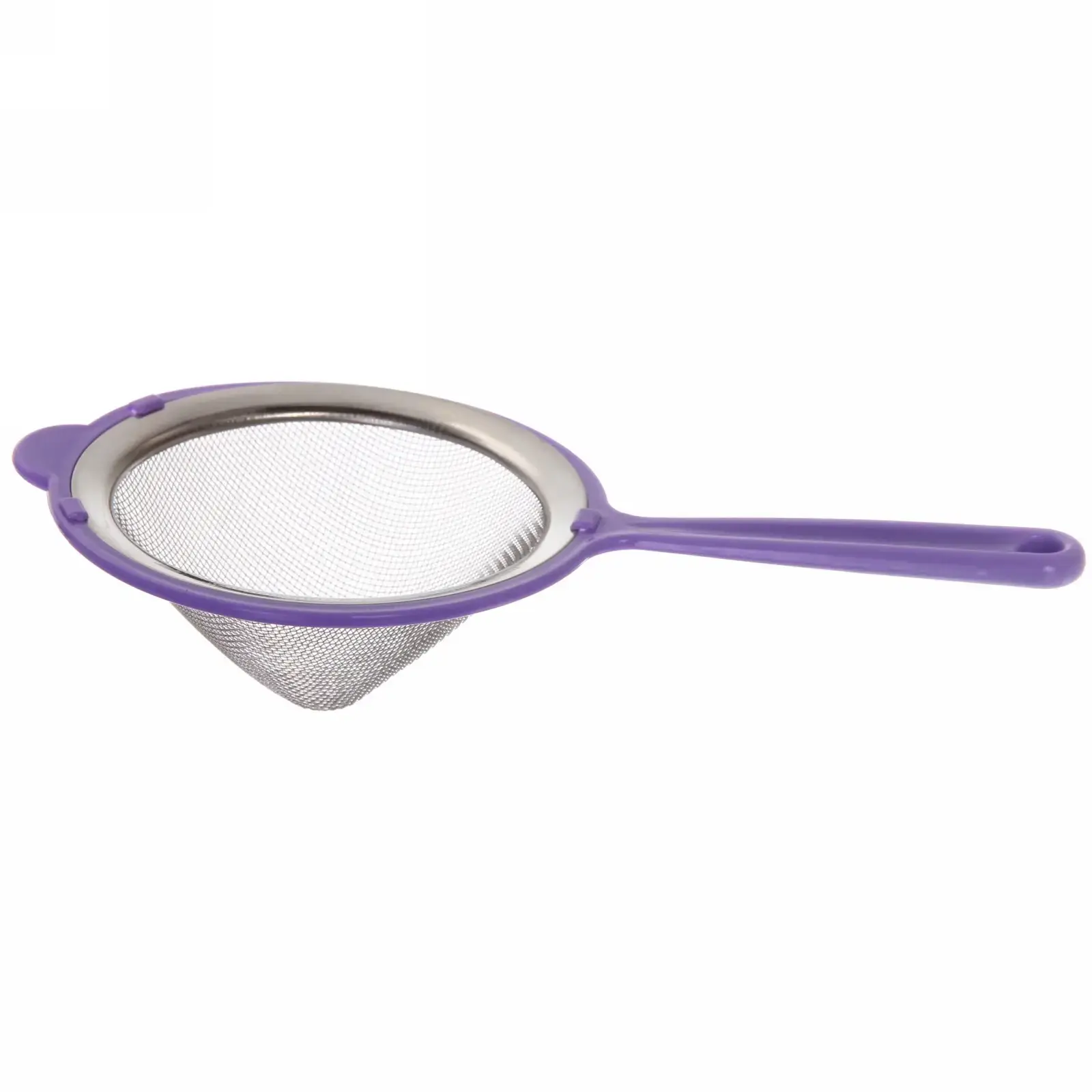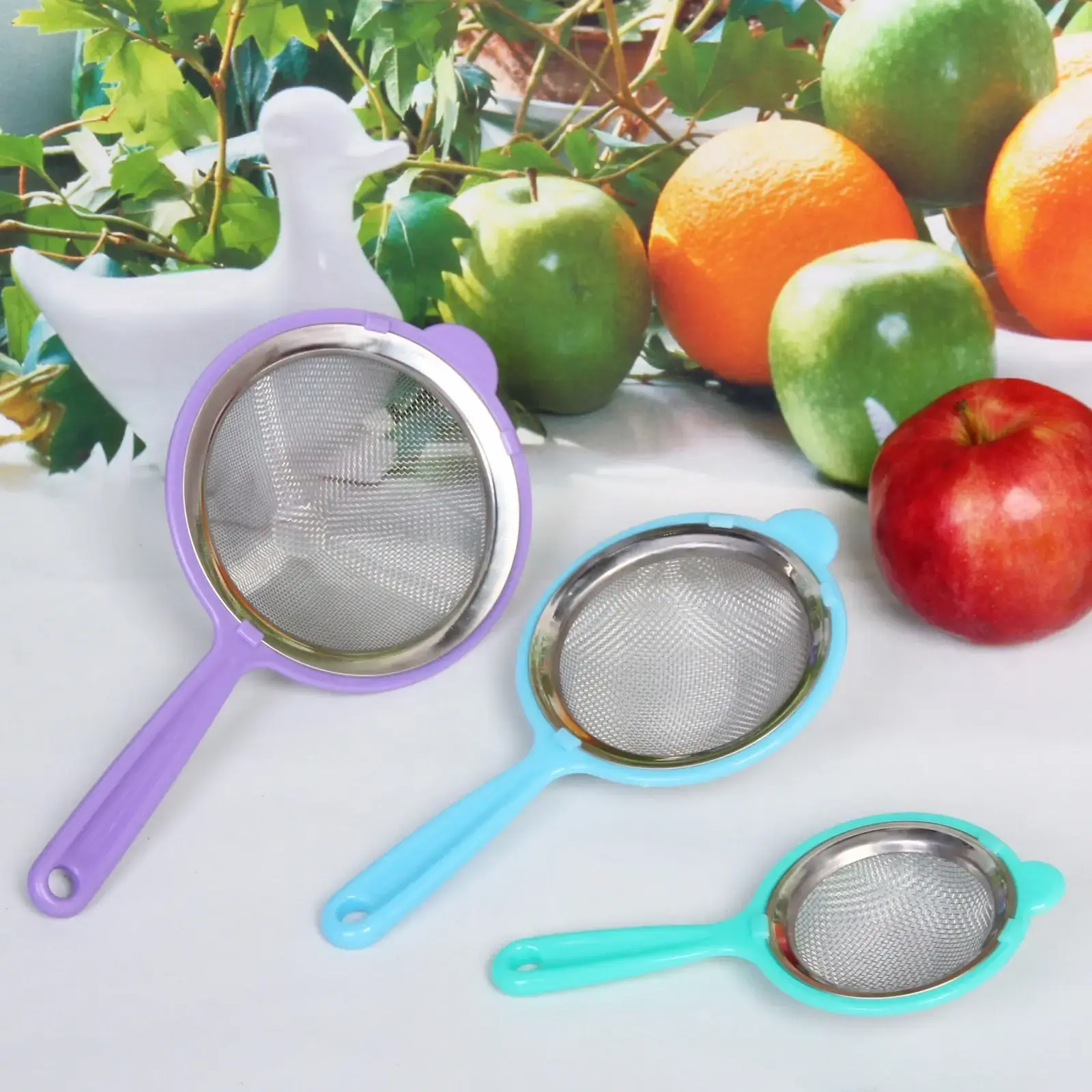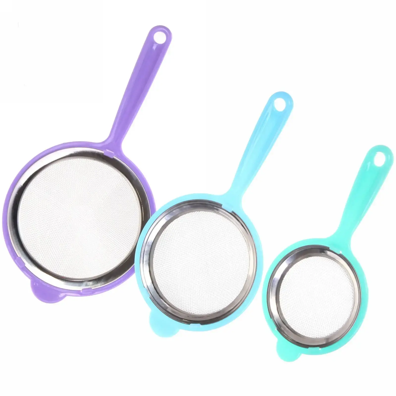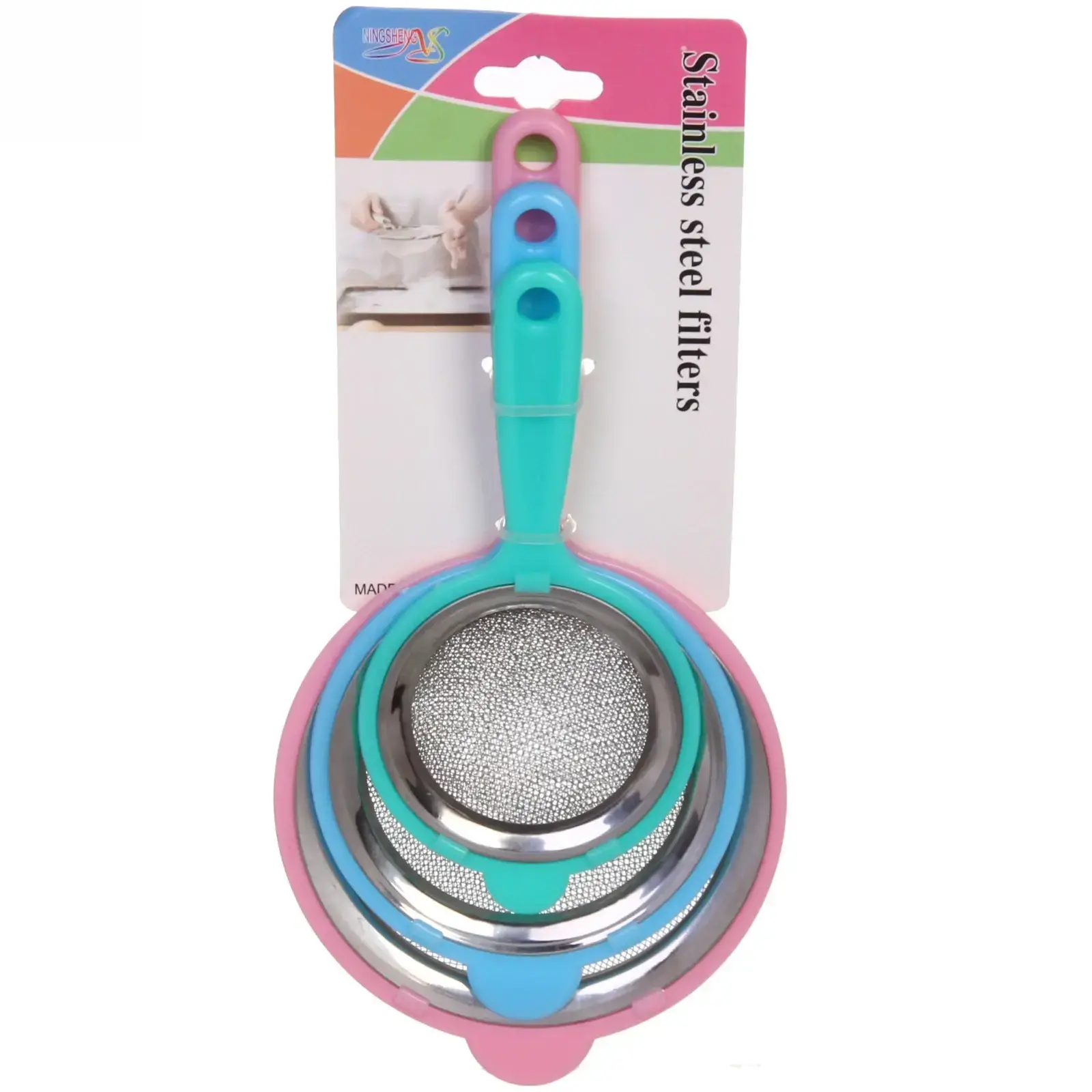 Сито кухонное металлическое, набор 3шт, пластиковая ручка (фиолетовый, голубой, зеленый), разные размеры