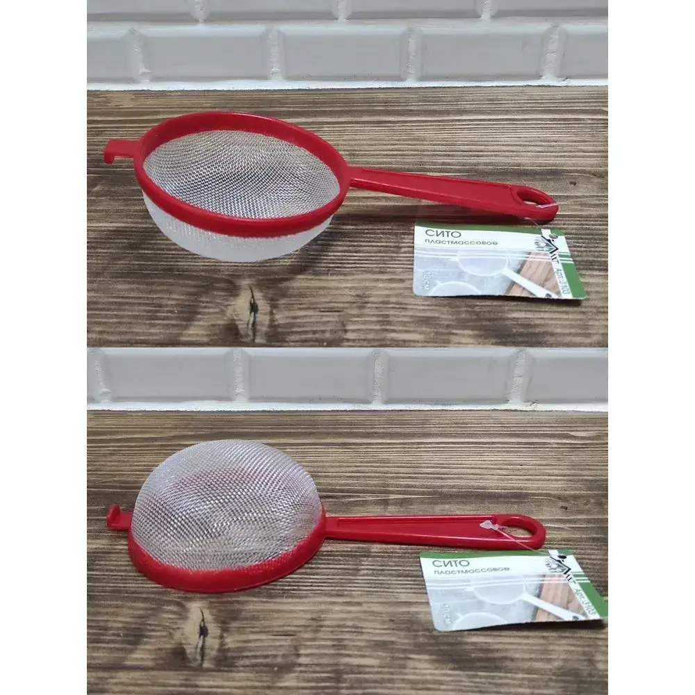 Сито кухонное пластиковое с металлической сеткой 10 см, красное, удобная ручка