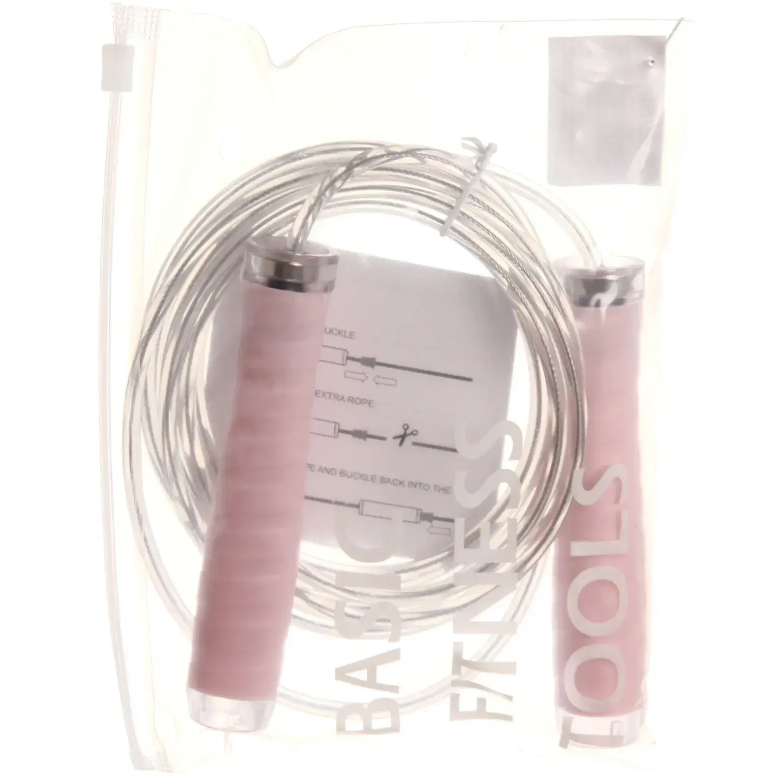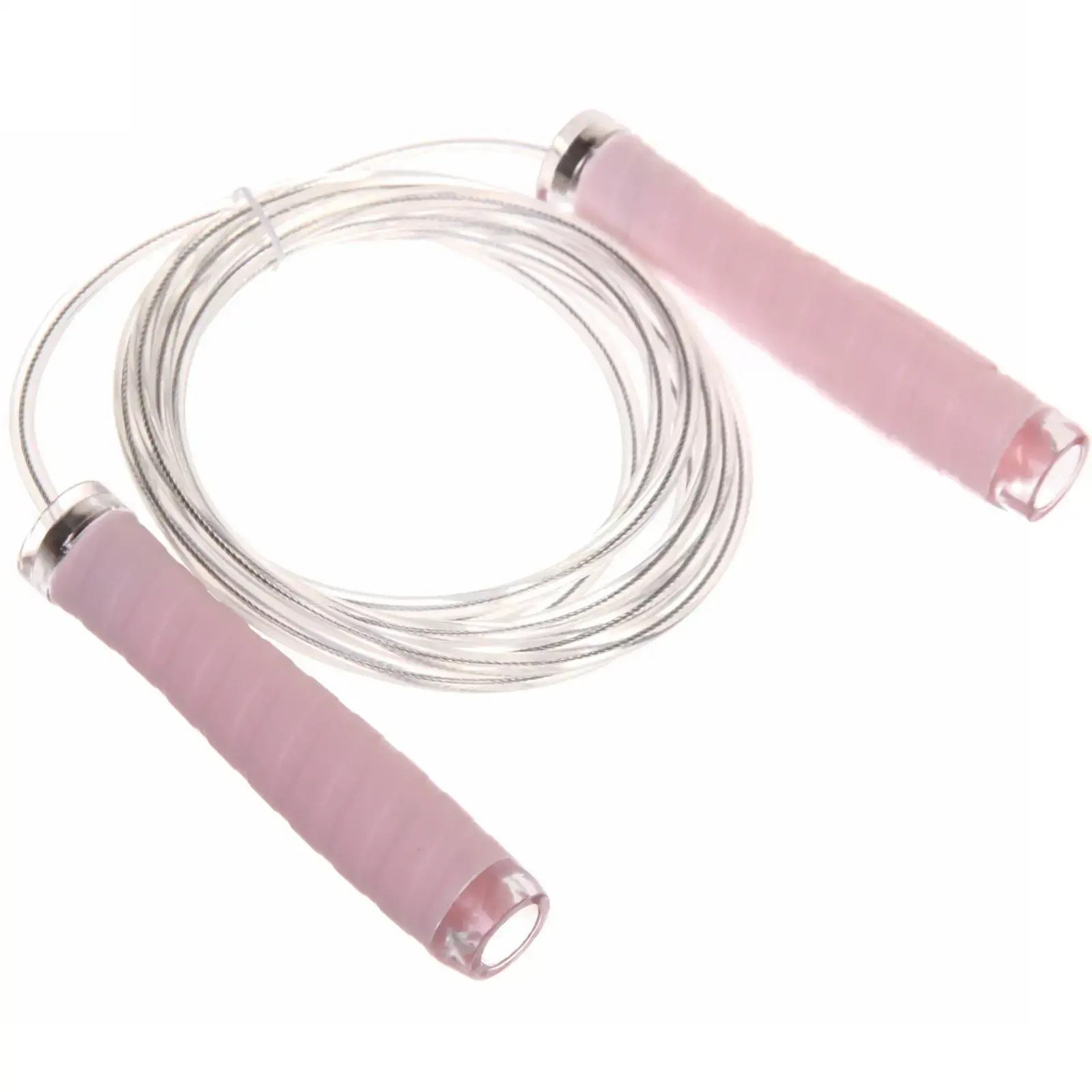 Скакалка изготовлена из высококачественных материалов: металл, ПВХ и пластик, что обеспечивает её прочность и долговечность. Ручки имеют округлую форму с прозрачными вставками, что делает их не только стильными, но и удобными в использовании. Упаковка включает инструкцию по настройке длины скакалки, что позволяет легко адаптировать её под ваши нужды.