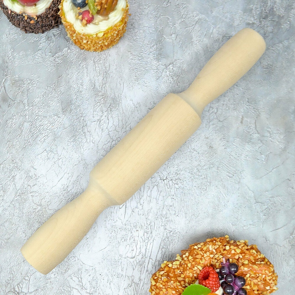 Скалка деревянная 30 см с эргономичной ручкой, для раскатки теста и выпечки