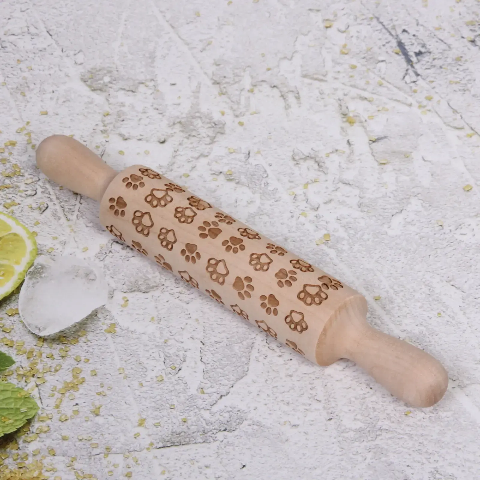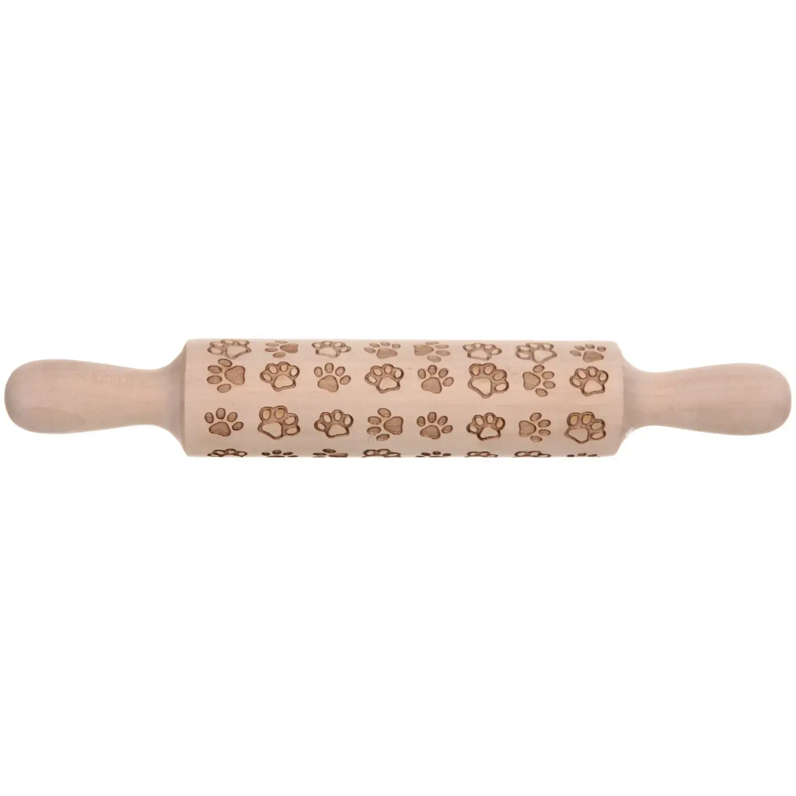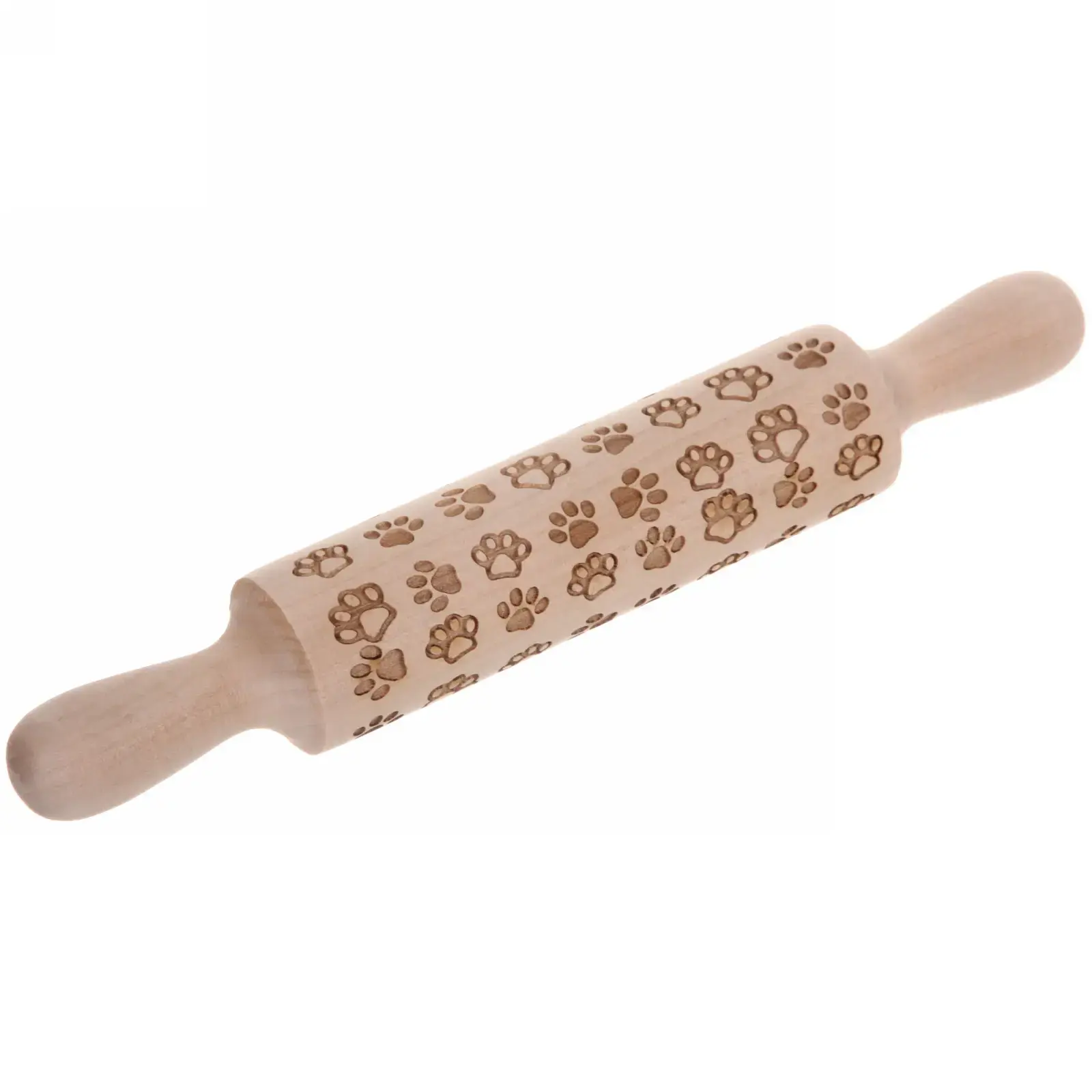 Скалка деревянная «Лапки» для декоративной выпечки, 28х4,5 см, рельефный узор