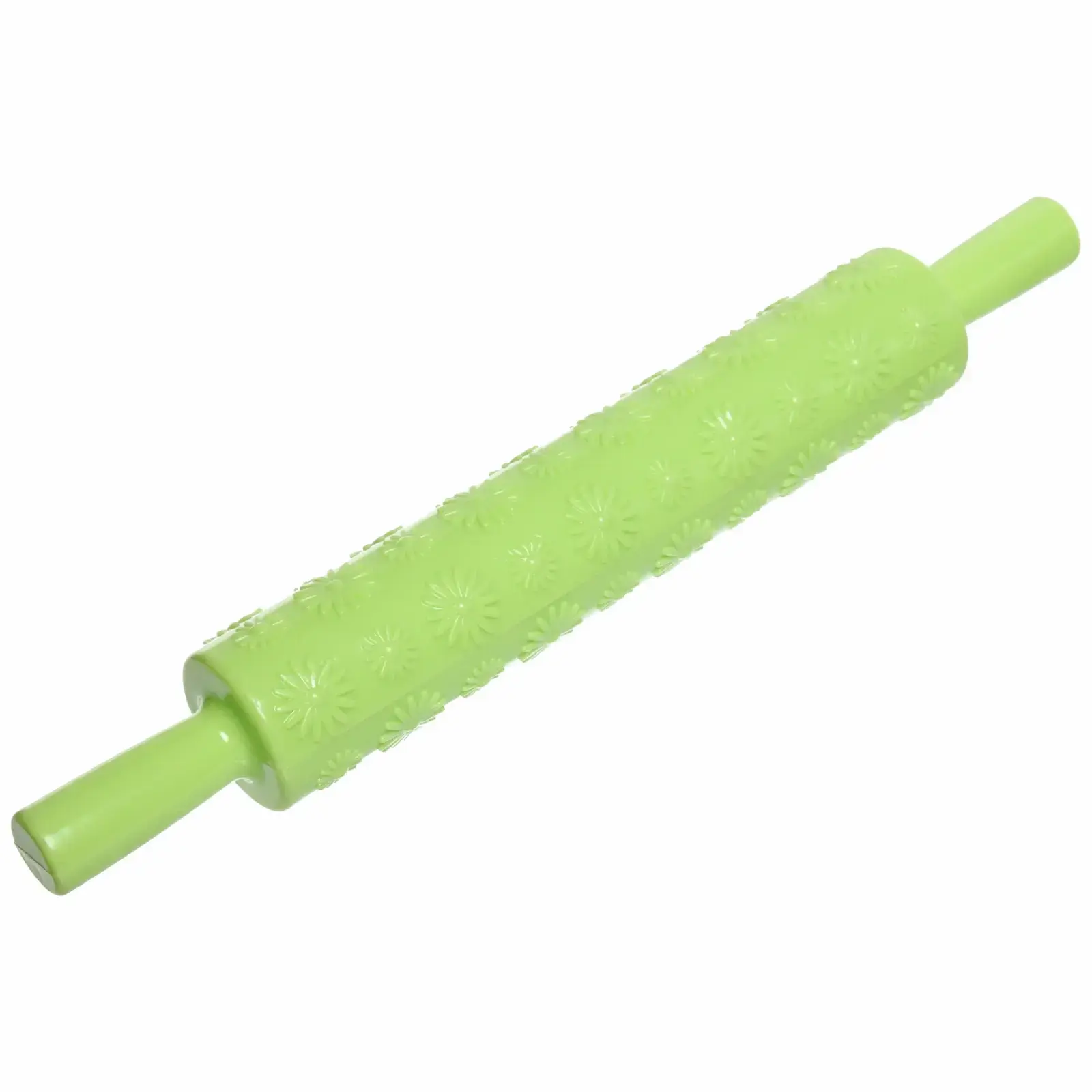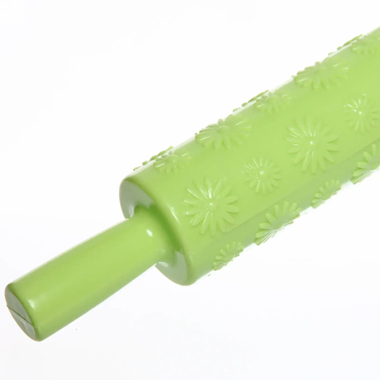 Скалка фигурная «Ромашки», силикон, цвет ярко-зеленый, 37х4,5 см — для декора теста