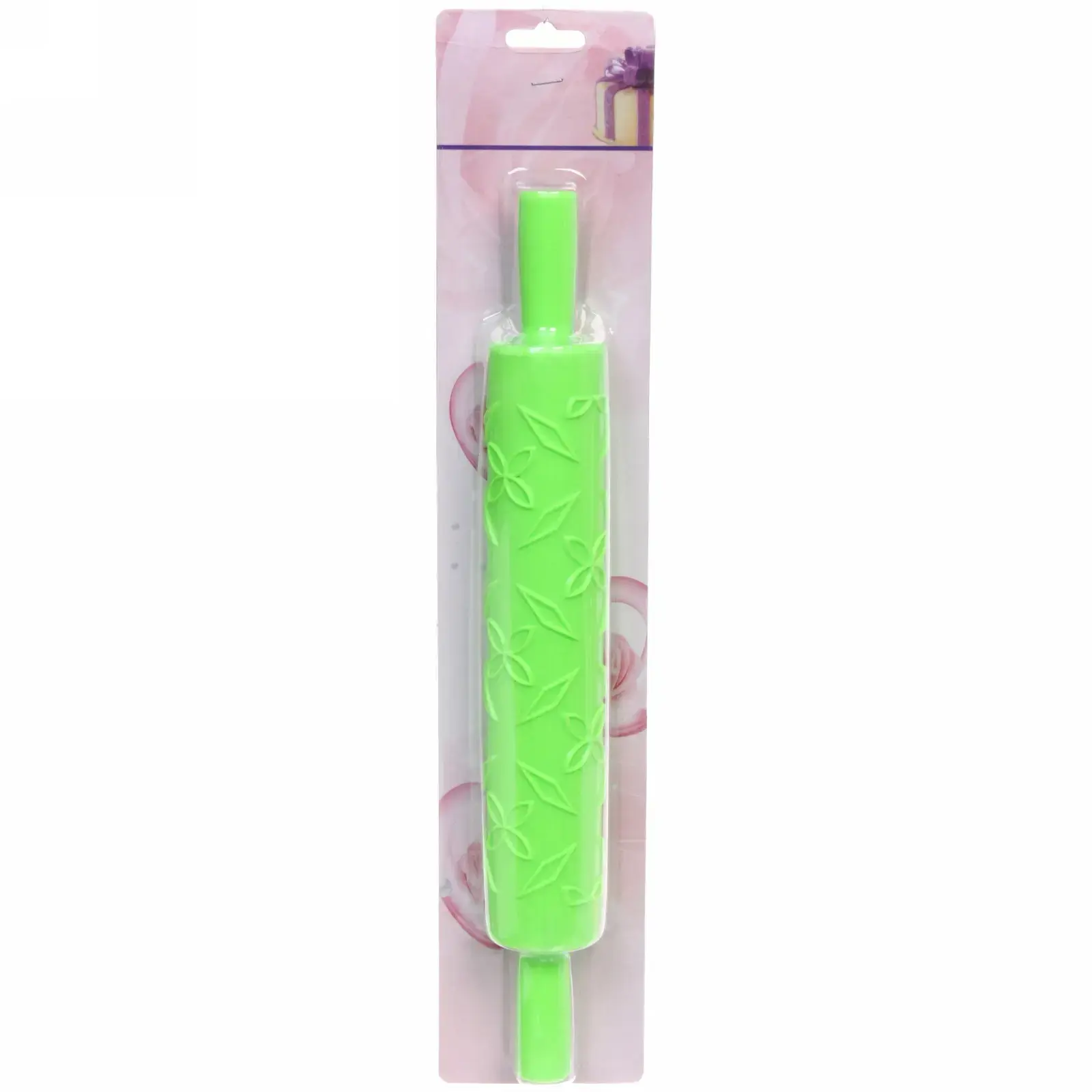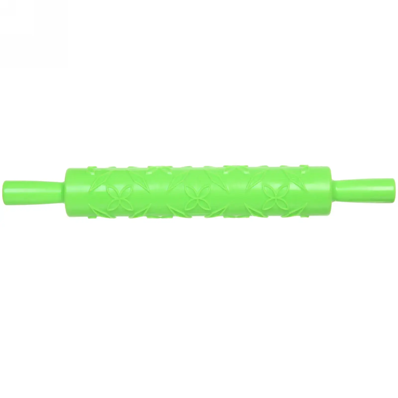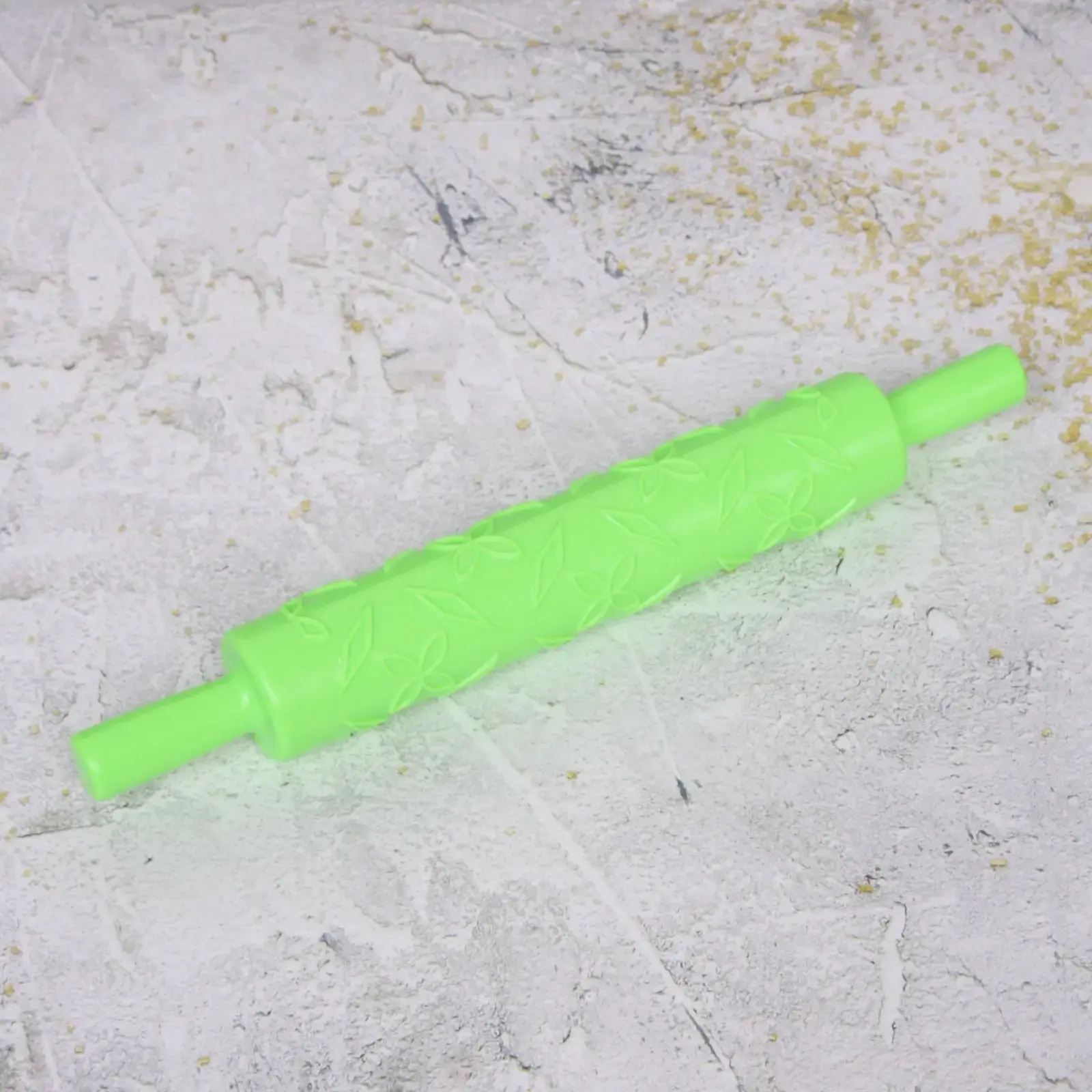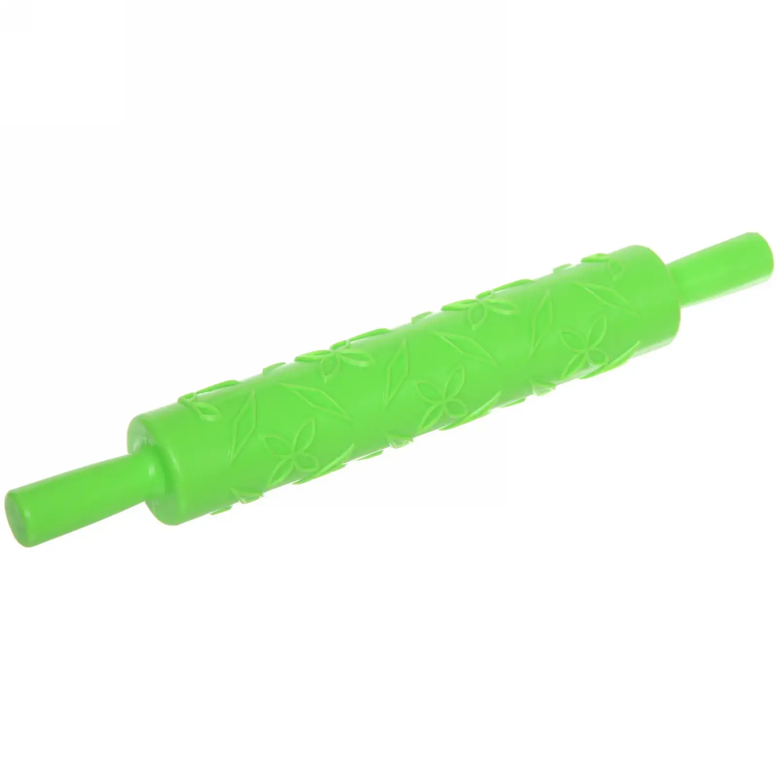 Скалка для теста «Цветочки» пластиковая, 37х5 см, ярко-зеленый цвет, рельефный узор роз