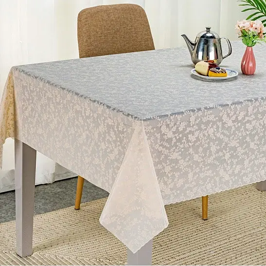 Скатерть изготовлена из качественного поливинилхлорида, который обеспечивает надежную защиту поверхности стола от пролитой жидкости и загрязнений. Материал достаточно мягкий и пластичный, что позволяет легко расправлять изделие на столе.