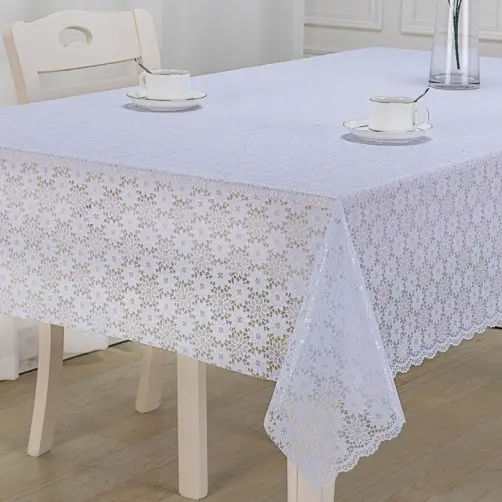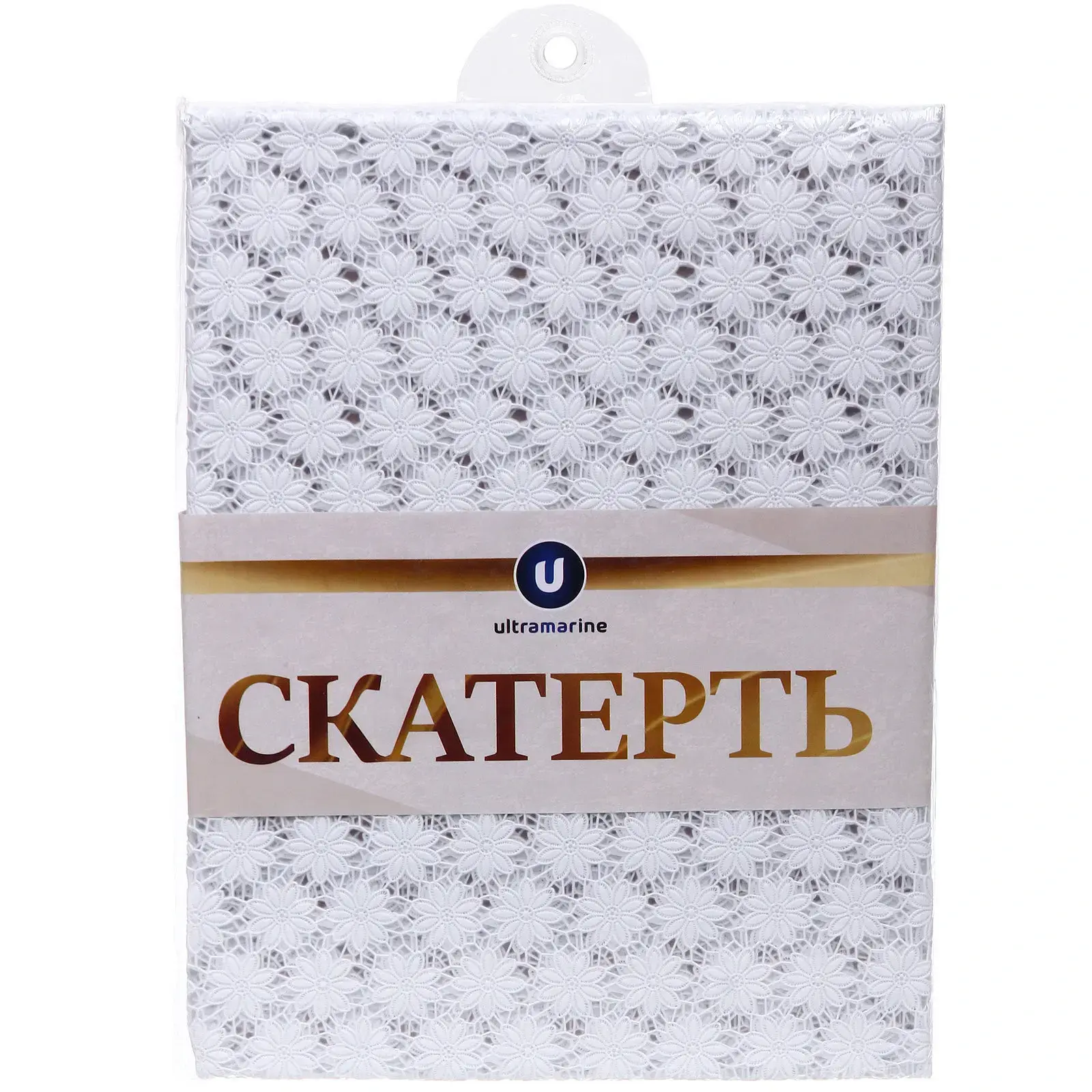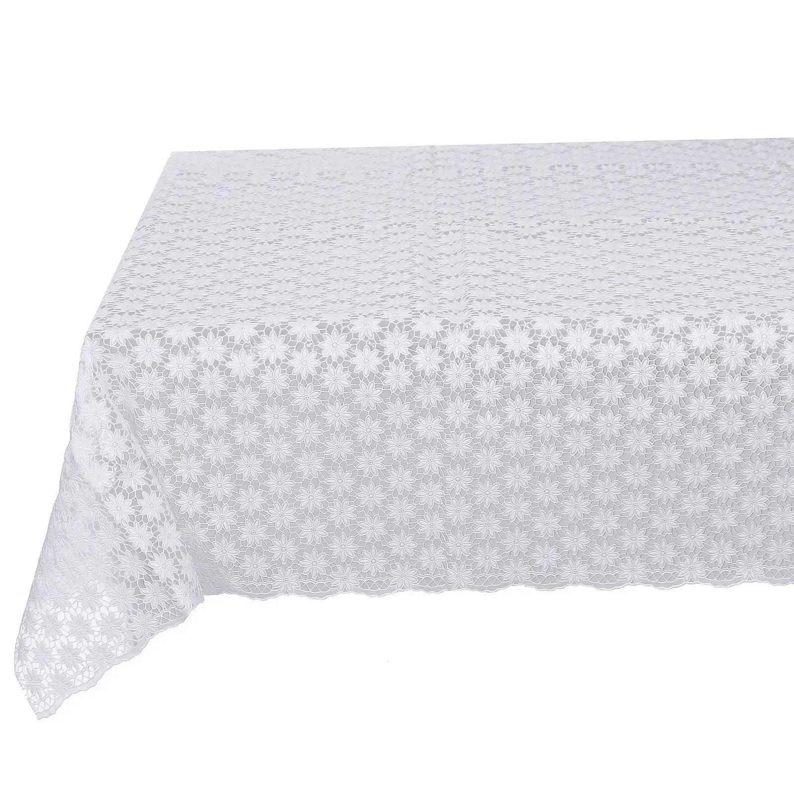 Белоснежный фон с цветочным орнаментом создает атмосферу свежести и комфорта. Скатерть идеально подходит как для повседневного использования, так и для праздничных мероприятий.