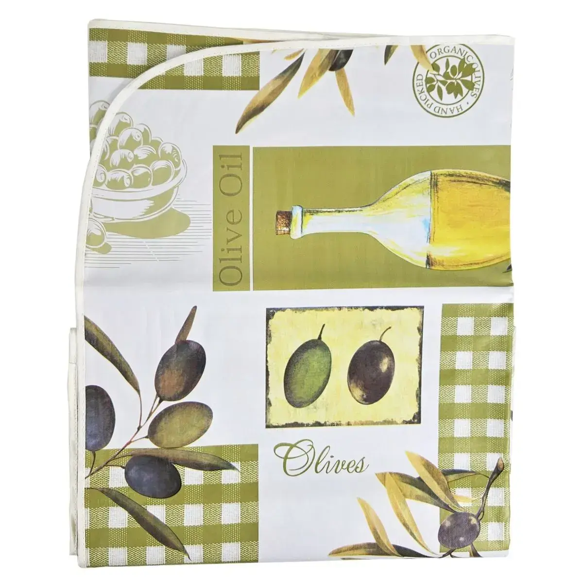 Эта скатерть размером 140 х 220 см выполнена из прочного текстильного материала, который легко моется и устойчив к загрязнениям. Ее яркий дизайн с иллюстрациями оливок, ветками и клетчатым узором создаст уютную атмосферу во время семейных обедов и праздников.