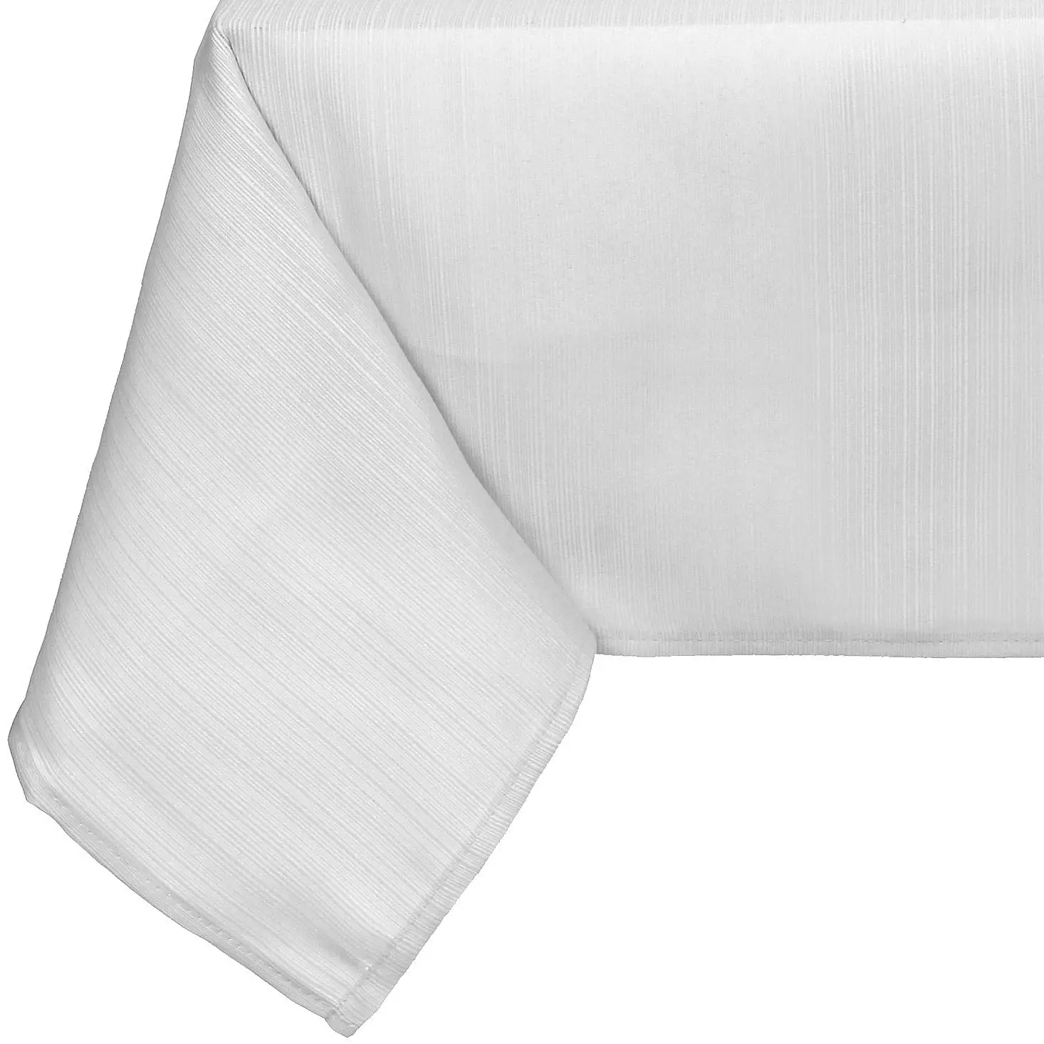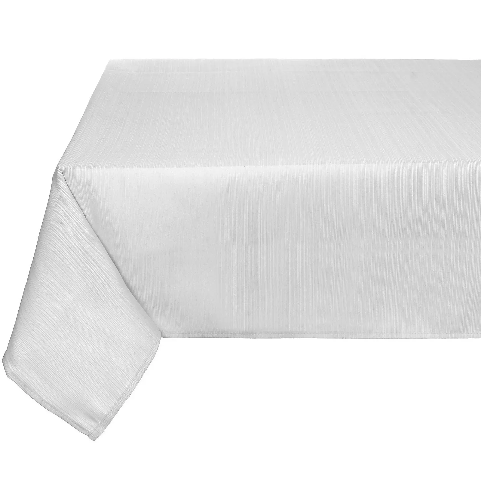 Использовать скатерть просто: достаточно расстелить ее на стол или другую поверхность, и она готова к эксплуатации. Идеально подходит как для повседневных приемов пищи, так и для особых случаев благодаря своему классическому белому цвету и аккуратному виду. Материал 100% полиэстер обеспечивает прочность и легкую очистку, а водоотталкивающая обработка помогает сохранять свежий внешний вид долгое время.