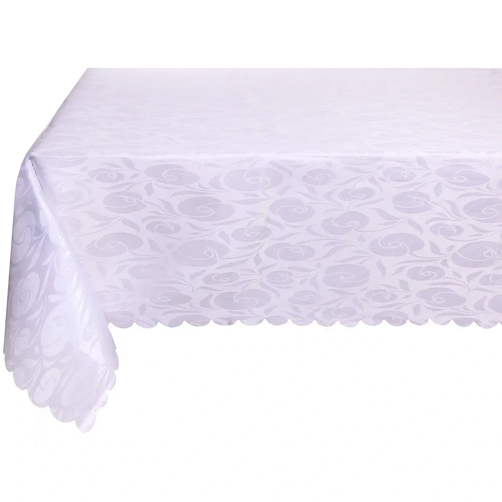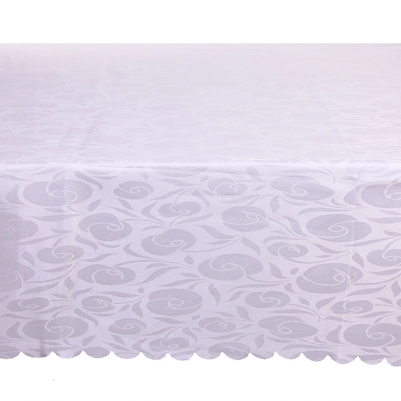 Прямоугольная скатерть «Классика» 148x180 см с утончённым жаккардовым узором из завитков и листьев создаёт атмосферу уюта и изысканности в вашем доме. Светлый белый оттенок подчёркивает чистоту и гармонию оформления, а фигурная волнистая окантовка придаёт изделию декоративную завершённость.