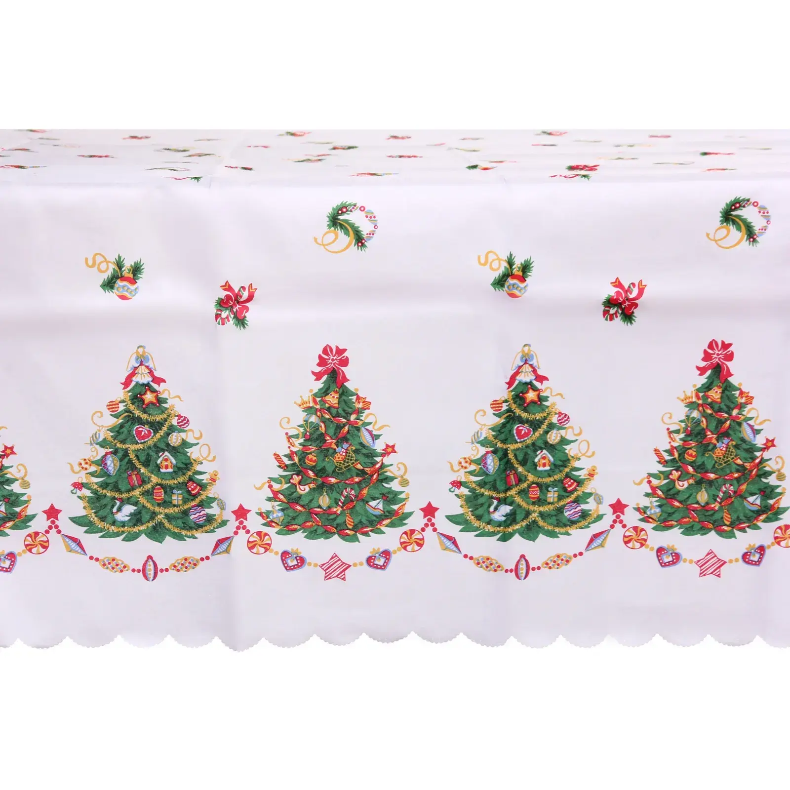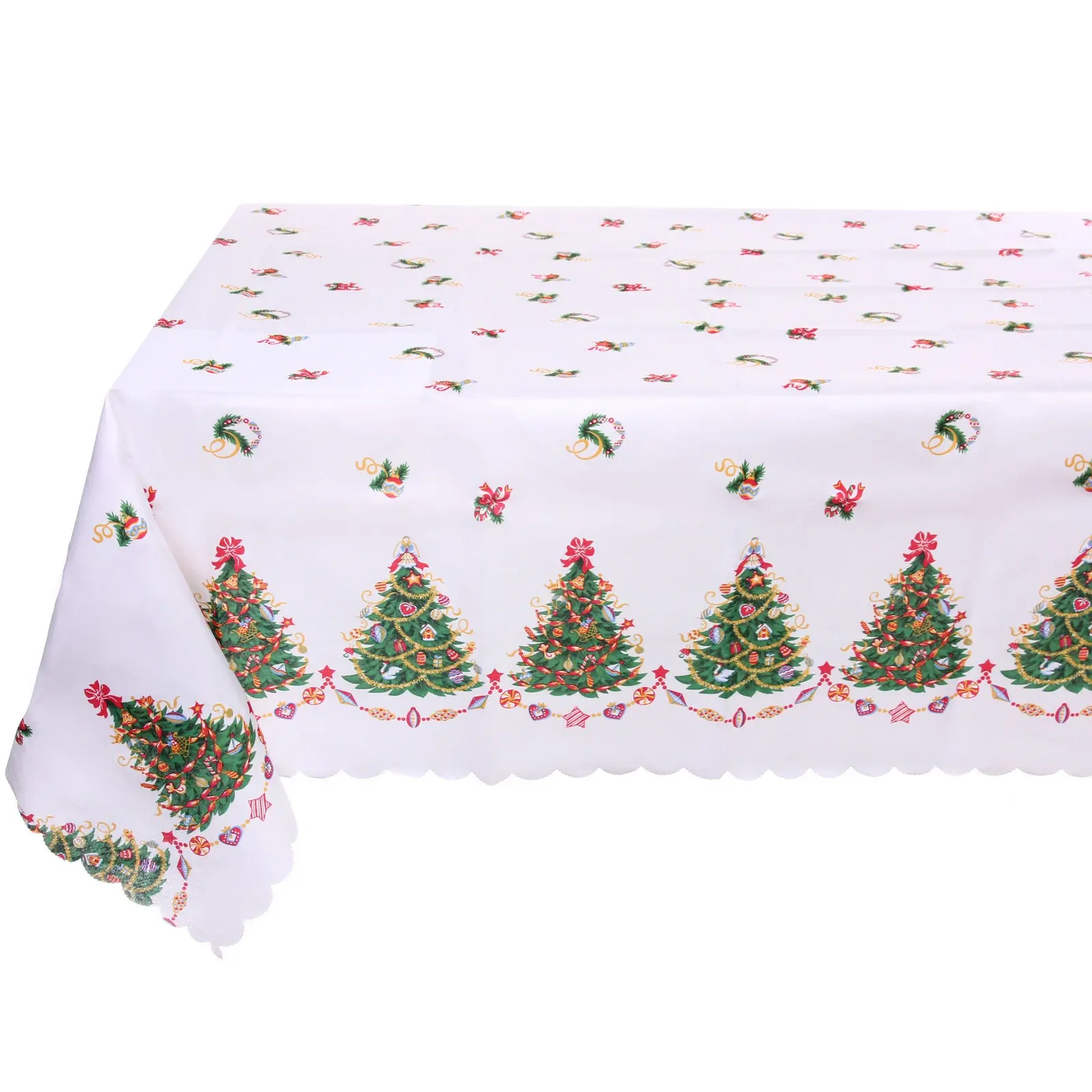 Скатерть 150*180 см «Новогодняя ёлочка» 100% полиэстер, белый/цветной декоративный узор