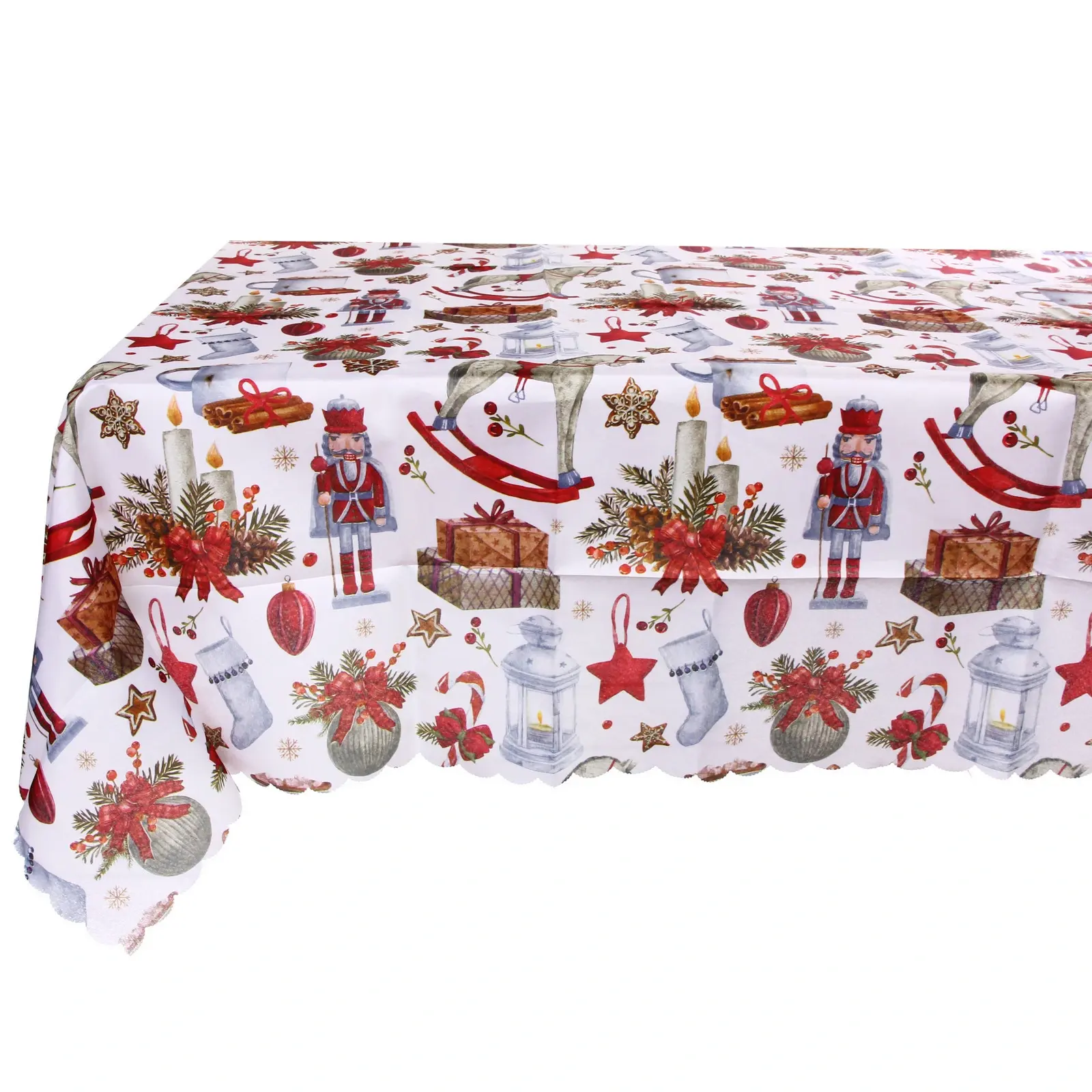 Скатерть 150x180 см «щелкунчик» 100% полиэстер, новогодний принт, волнистая окантовка