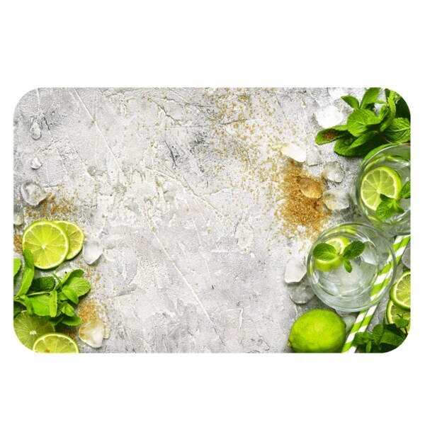 Полипропиленовая поверхность не впитывает запахи и жир, что особенно важно при сервировке с блюдами. Контрастный дизайн с зелеными акцентами (как на фото) гармонично сочетается с прозрачной посудой и натуральными текстурами.