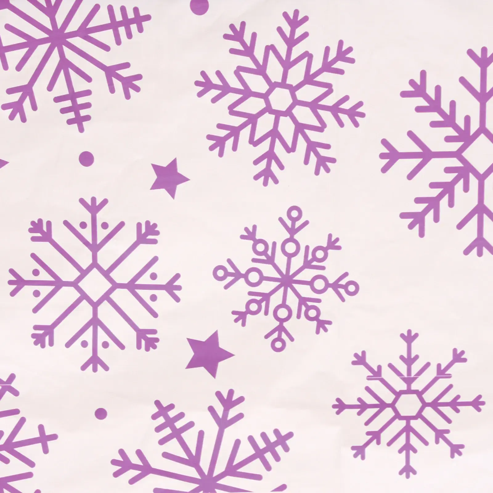 Создайте атмосферу волшебства и уюта с новогодней скатертью 'Падал снег'. Её изысканный дизайн снежинок в фиолетовых тонах станет идеальным фоном для праздничного застолья.