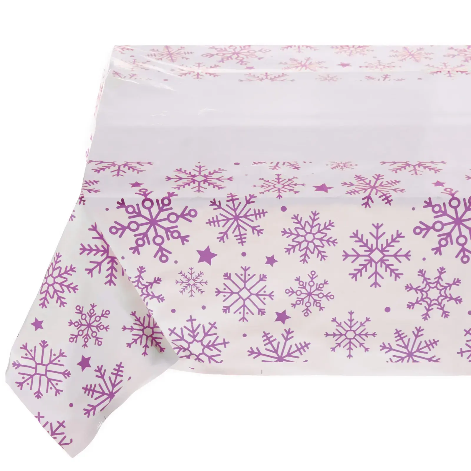 Скатерть 'Падал снег' 108х180 см, пвх, сиреневый, новогодний дизайн